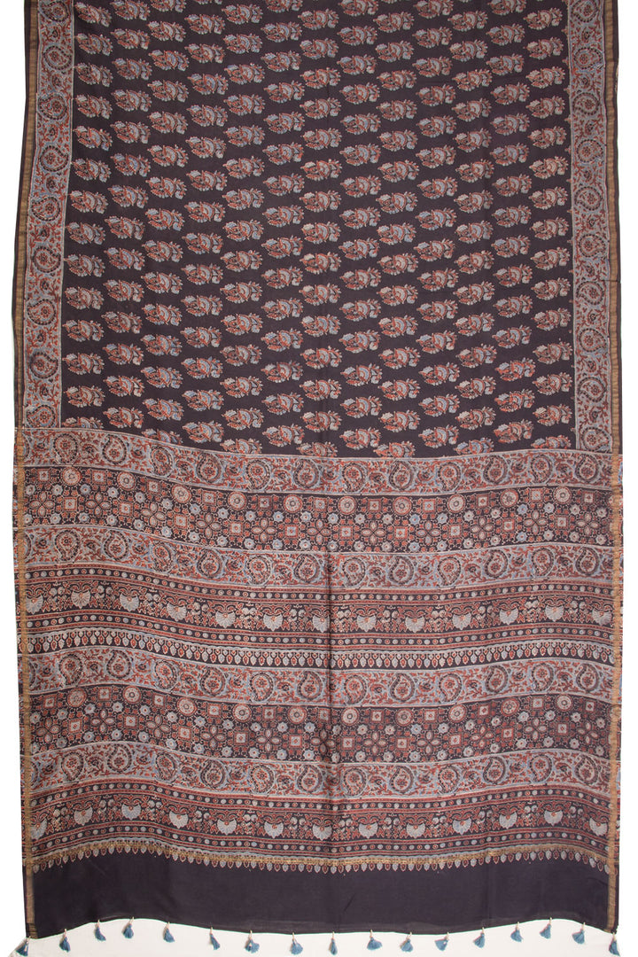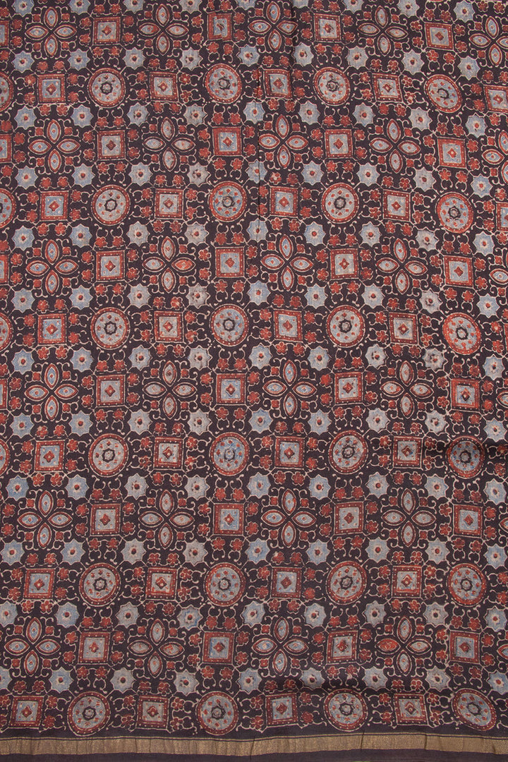 Black Ajrakh Printed Silk Cotton Saree 10068354