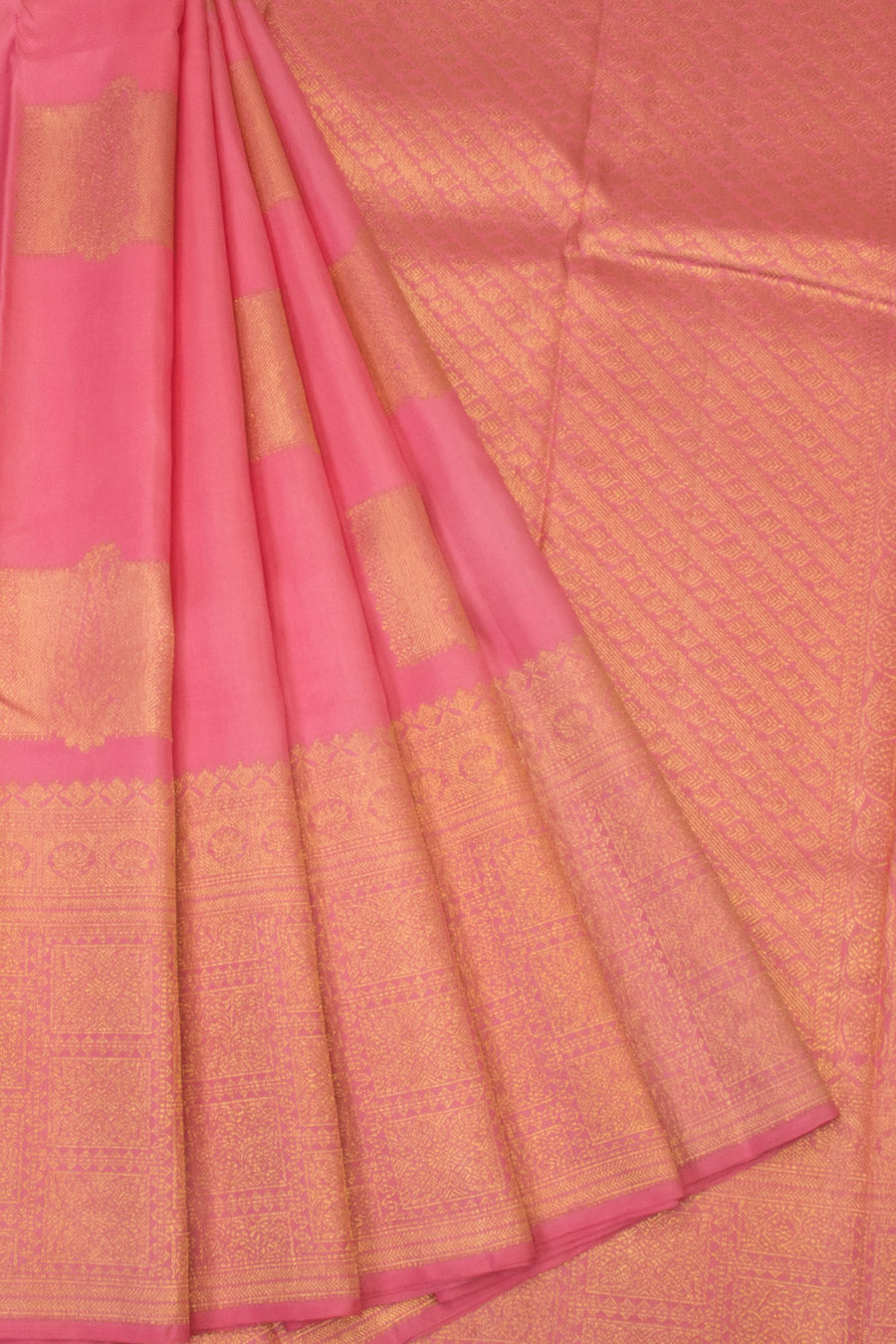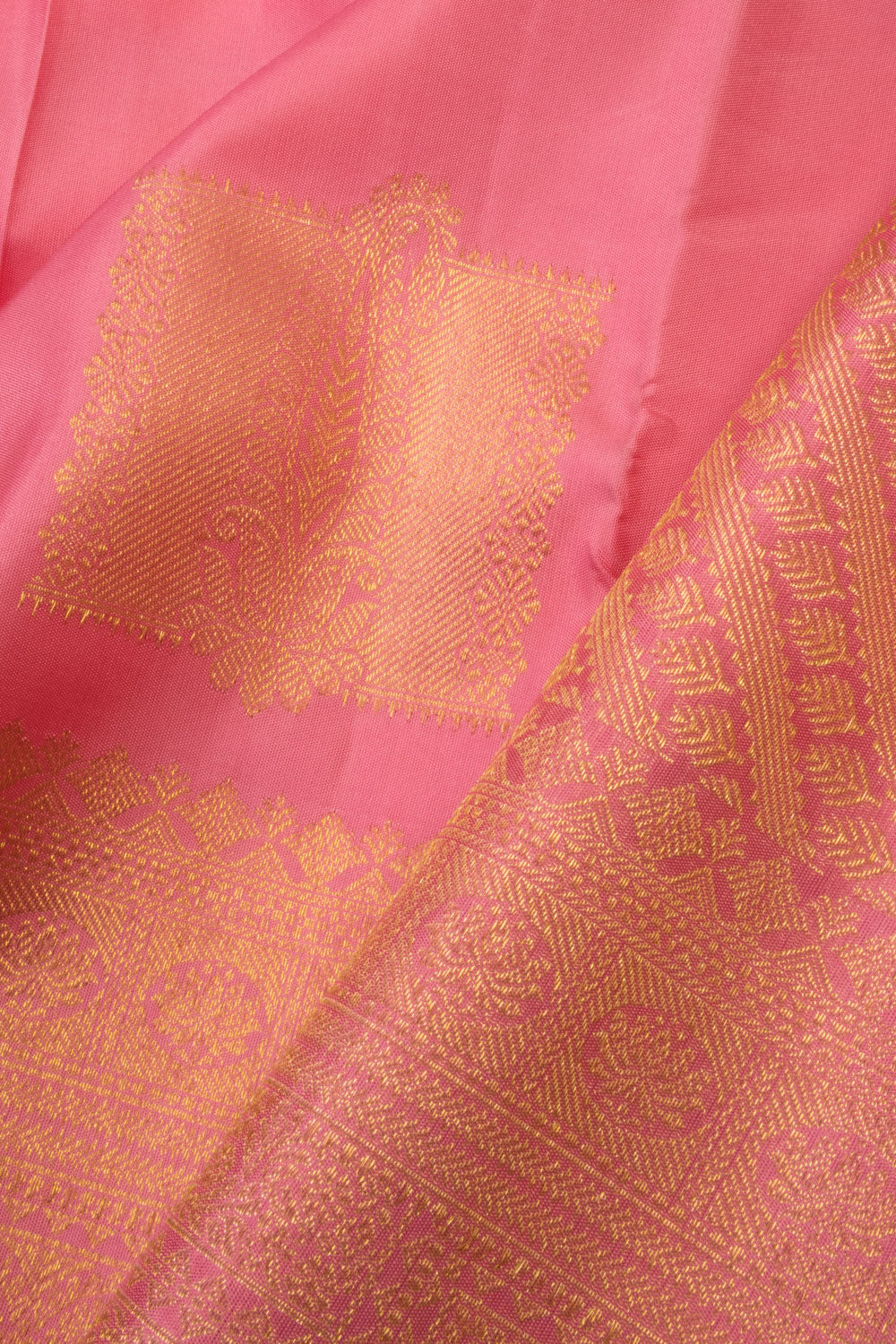 1 Year Baby Girl Handwoven Kanjivaram Silk Pattu Pavadai Material With Paisley Motifs and Floral Border 10054637Product Details