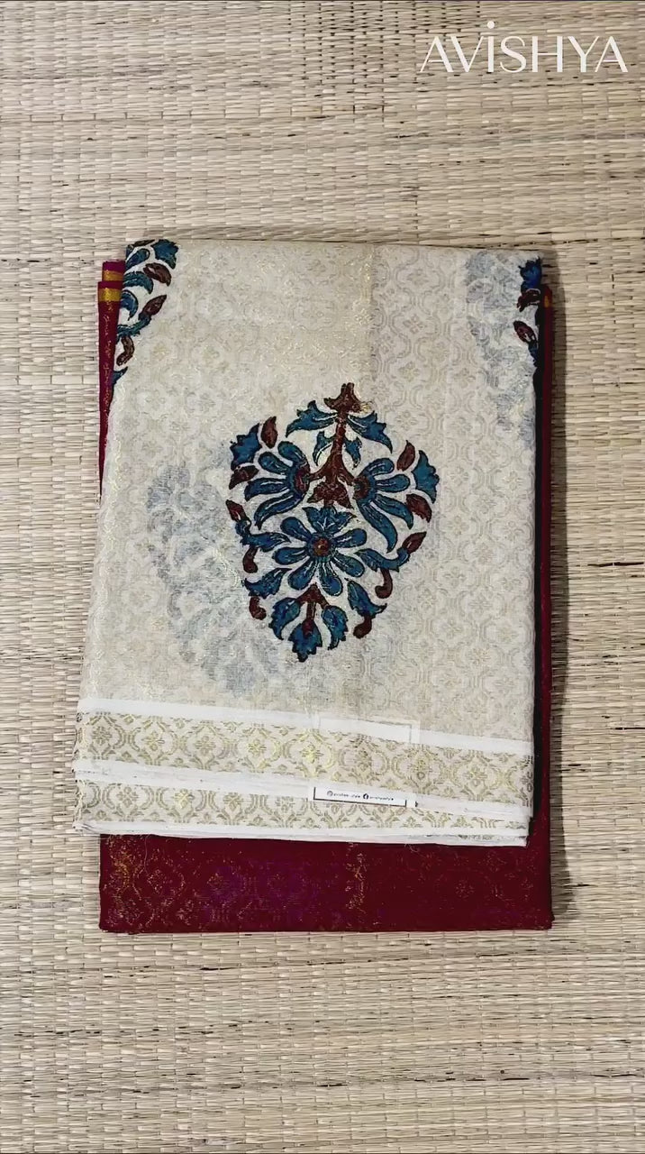 Half & Half Hand Block Brocade Dhaniakhali Cotton Saree 10068902