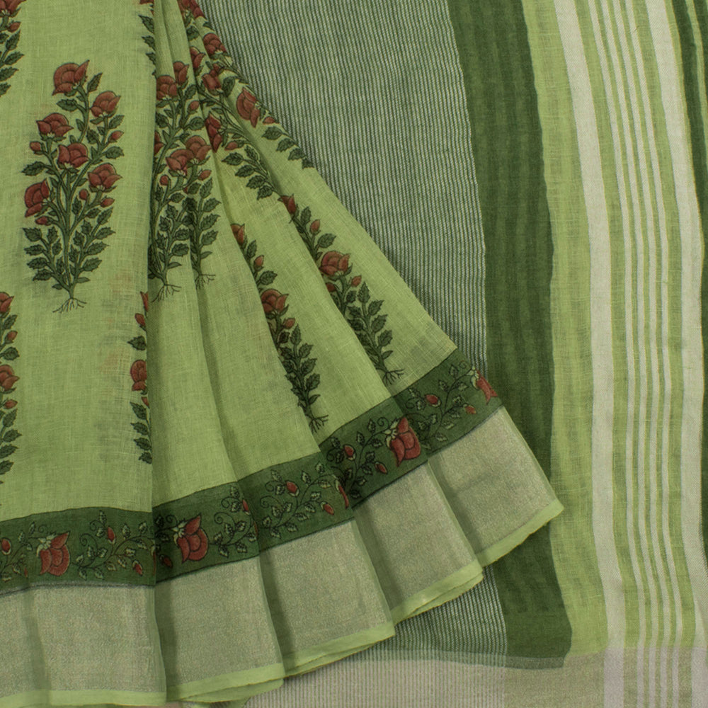 Printed Bhagalpur Linen Saree with Floral Motifs and Zari Border 10034701