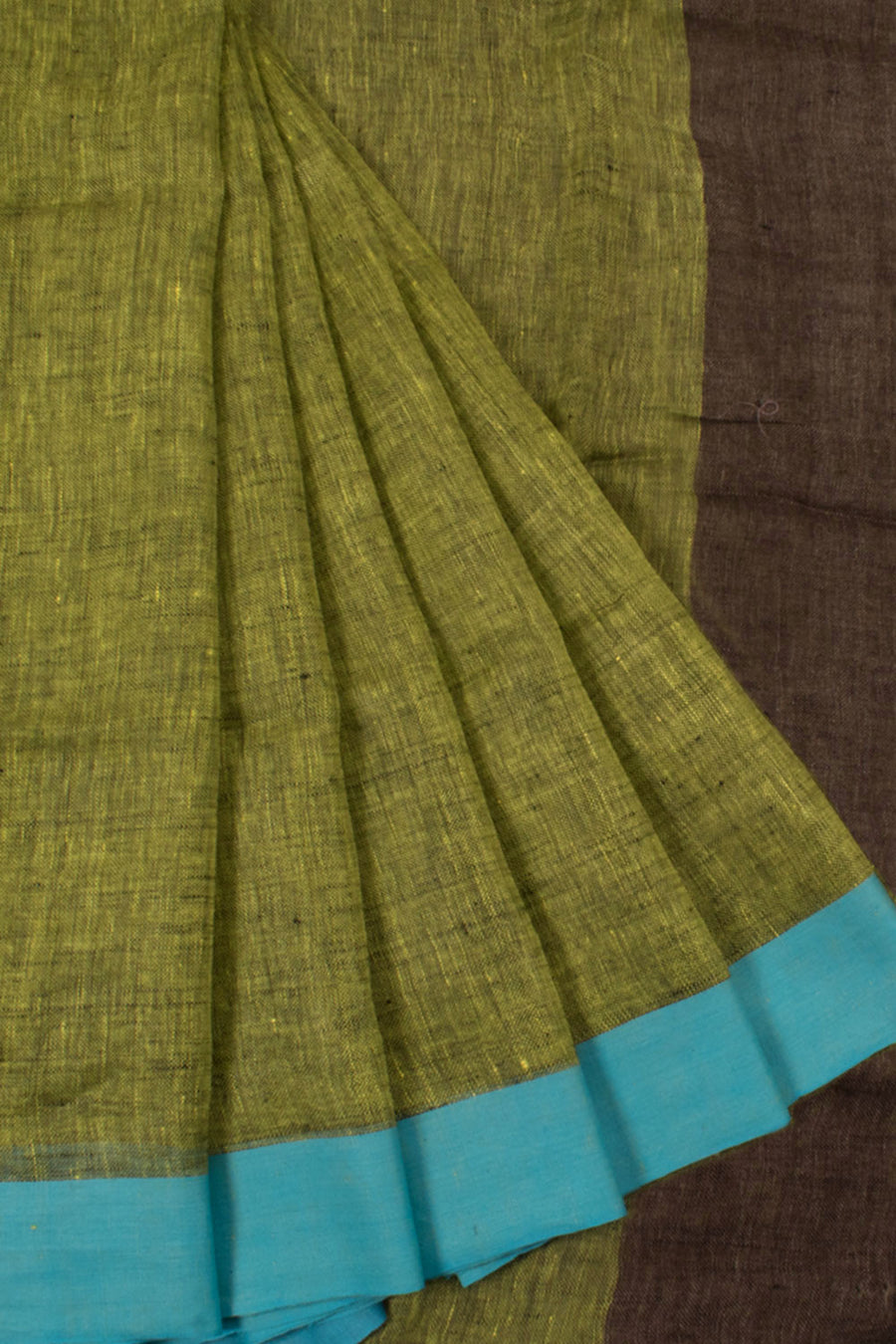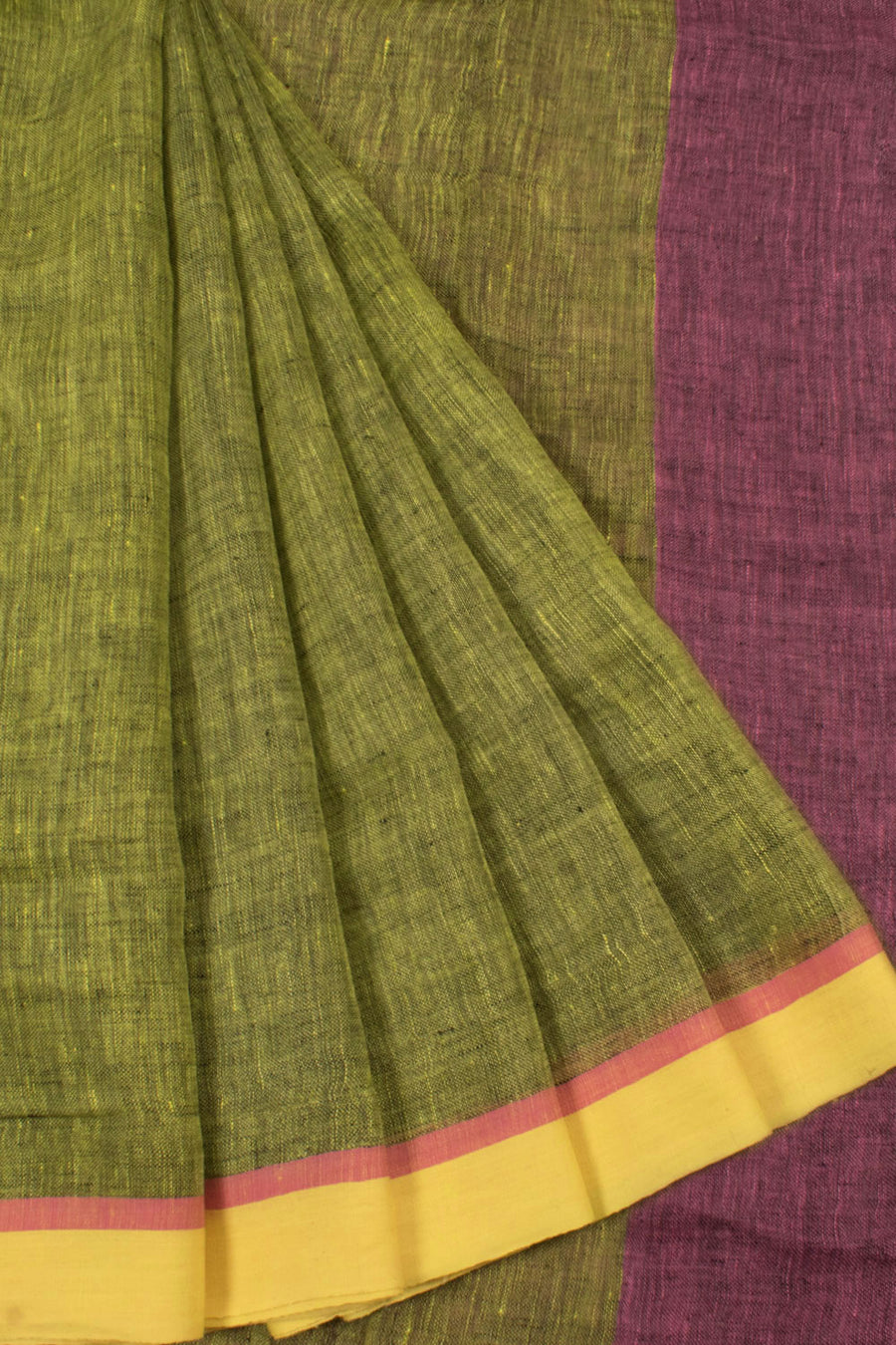 Handloom Bhagalpur Linen Saree with Contrast Border 10057615