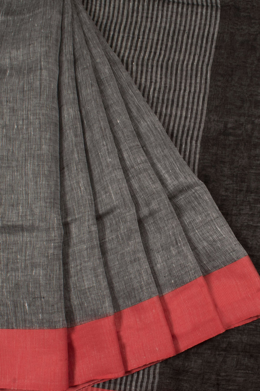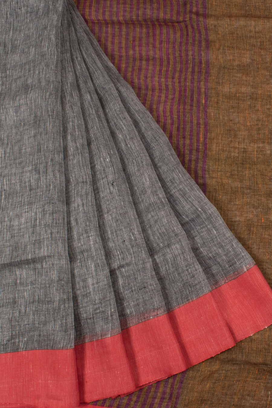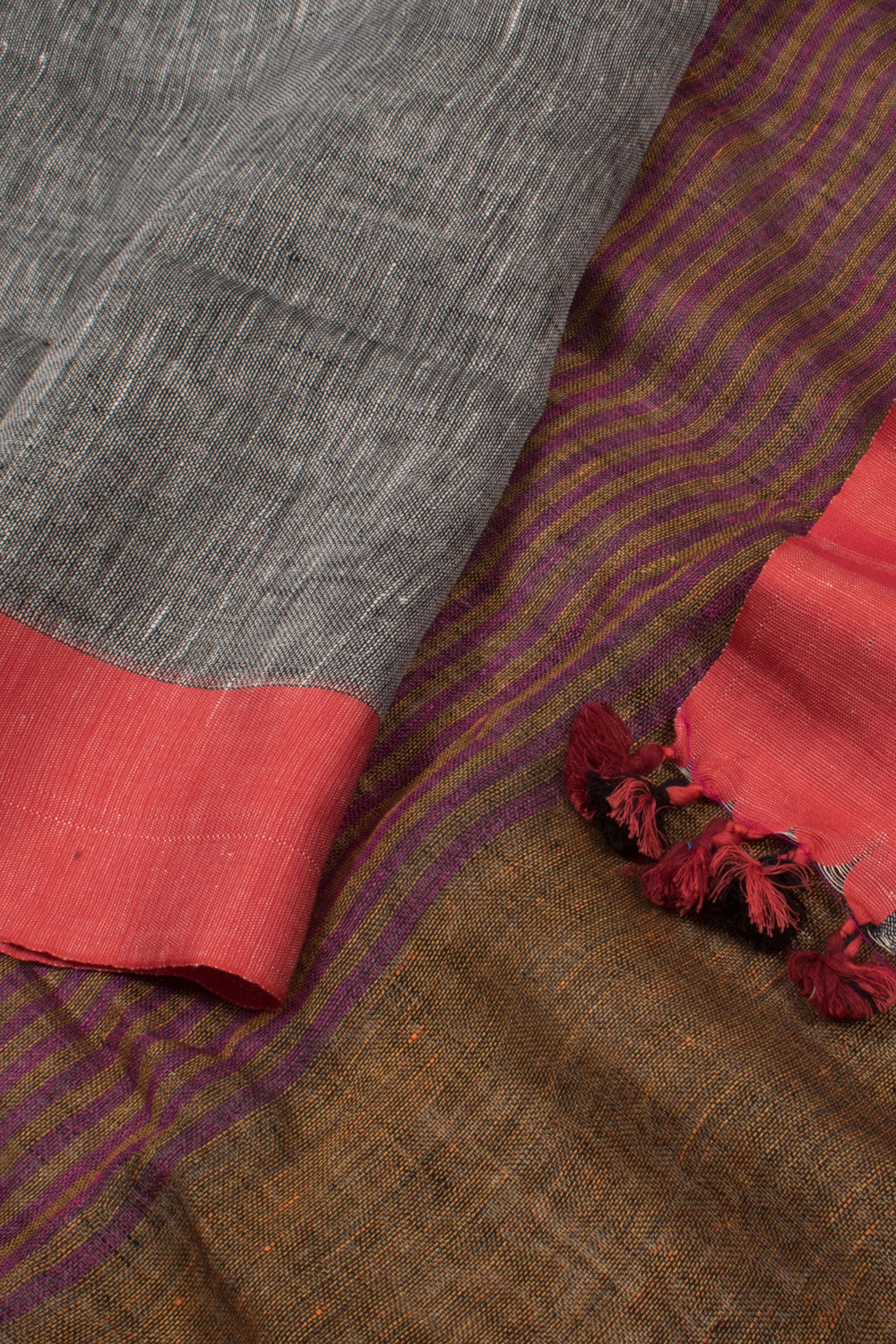 Handloom Bhagalpur Linen Saree with Contrast Border 10057625