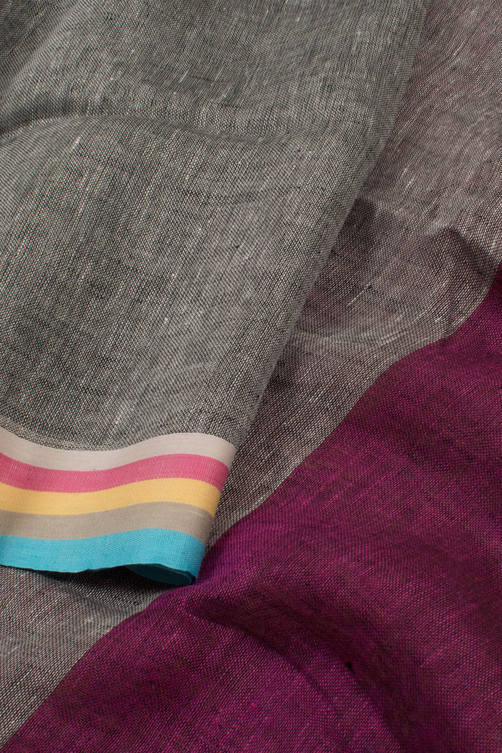 Handloom Bhagalpur Linen Saree with Multicolour Border 10057629