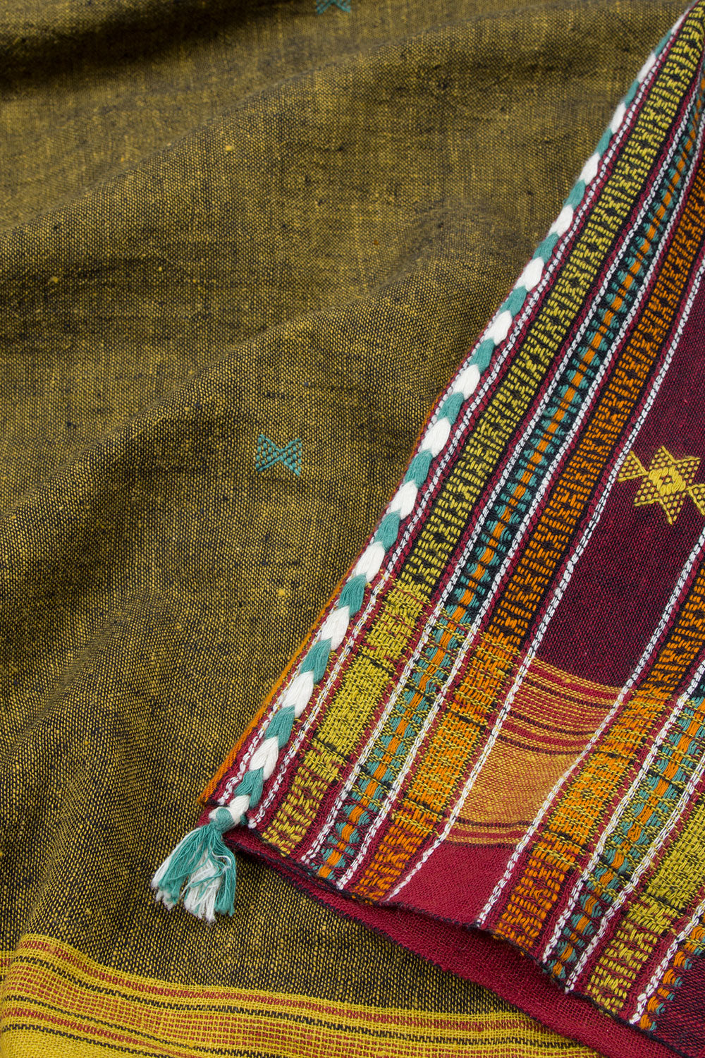 Add a pop of color to your wardrobe with this beautiful handloom Bhujodi linen saree. A timeless pick, this piece is woven to perfection with a blend of bright colors and a classy look. Perfect for accessorizing, worldwide ship...
