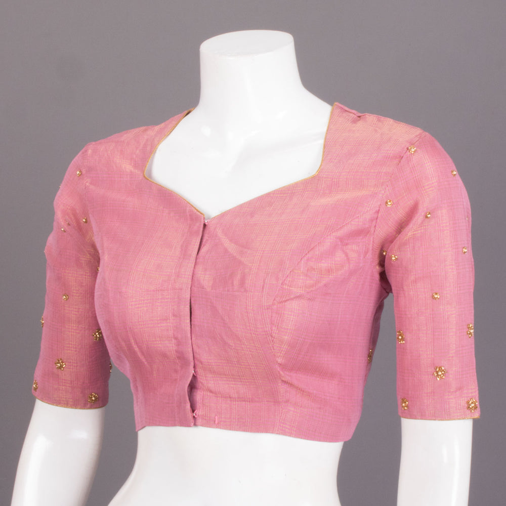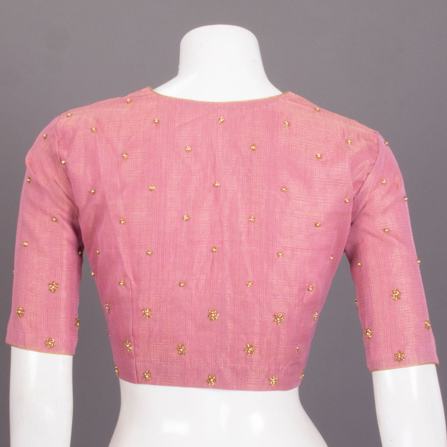 Fall in love with the stunning blend of elegance and charm offered by our Peach Aari Embroidered Chanderi Silk Blouse! The intricate Aari embroidery, paired with delicate bead work on the back and sleeves, exudes sophistication...