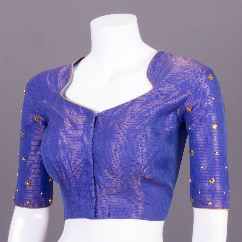 Experience the irresistible charm of our remarkable Blue Aari Embroidered Chanderi Silk Cotton Blouse. The intricate Aari embroidery on the back and sleeves exudes elegance and class, enhancing the glamour of your Silk saree fo...