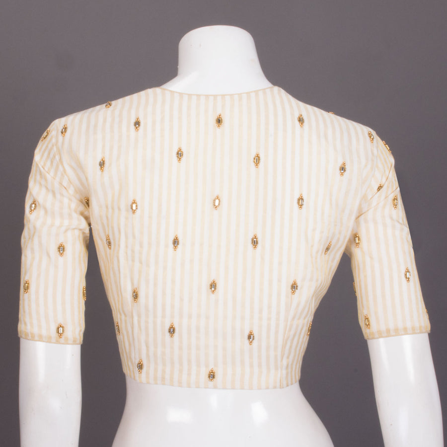 Experience the stunning elegance and charm of our cream Aari Embroidered Cream Aari Embroidered Chanderi Silk Cotton Blouse! The intricate Aari embroidery on the back and sleeves adds a touch of sophistication to your Silk sare...