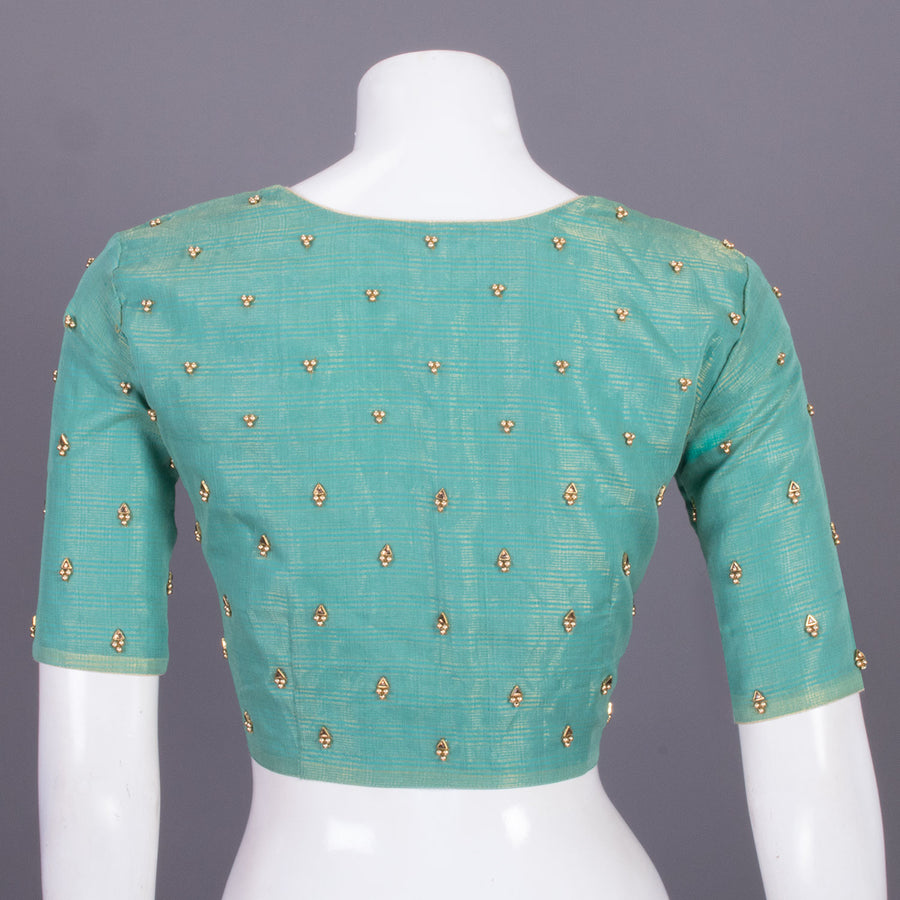 Experience elegance and charm with our Green Aari Embroidered Silk Cotton Blouse featuring intricate embroidery on the back and sleeves. Perfectly complement any Silk saree and exude refinement on all your special occasions.