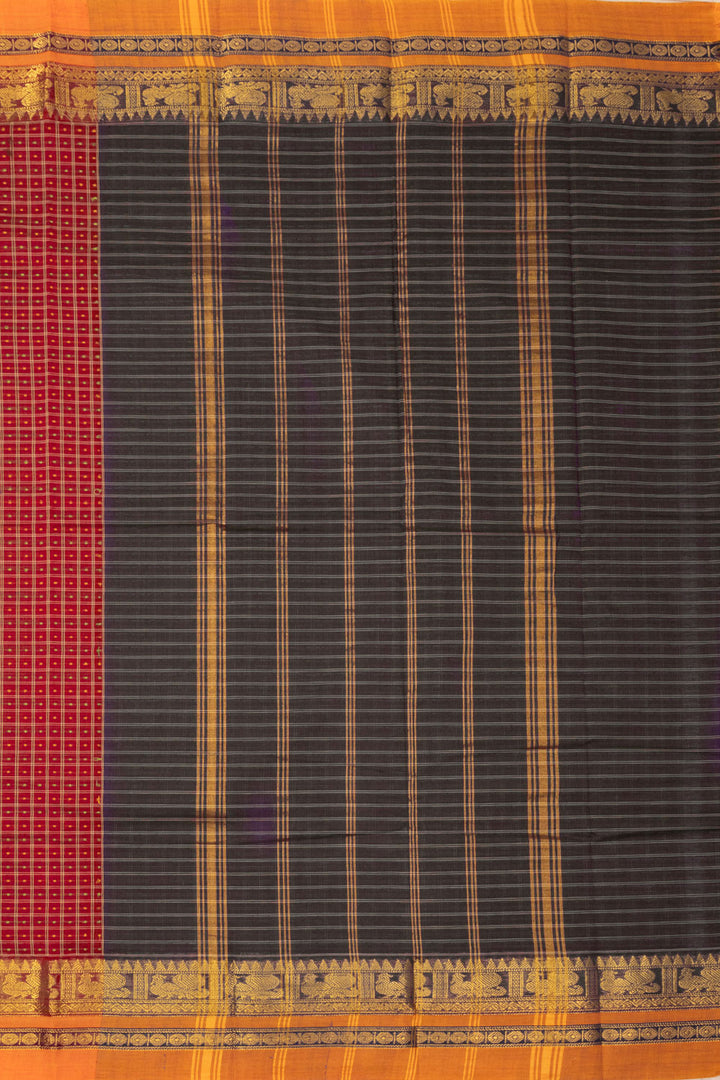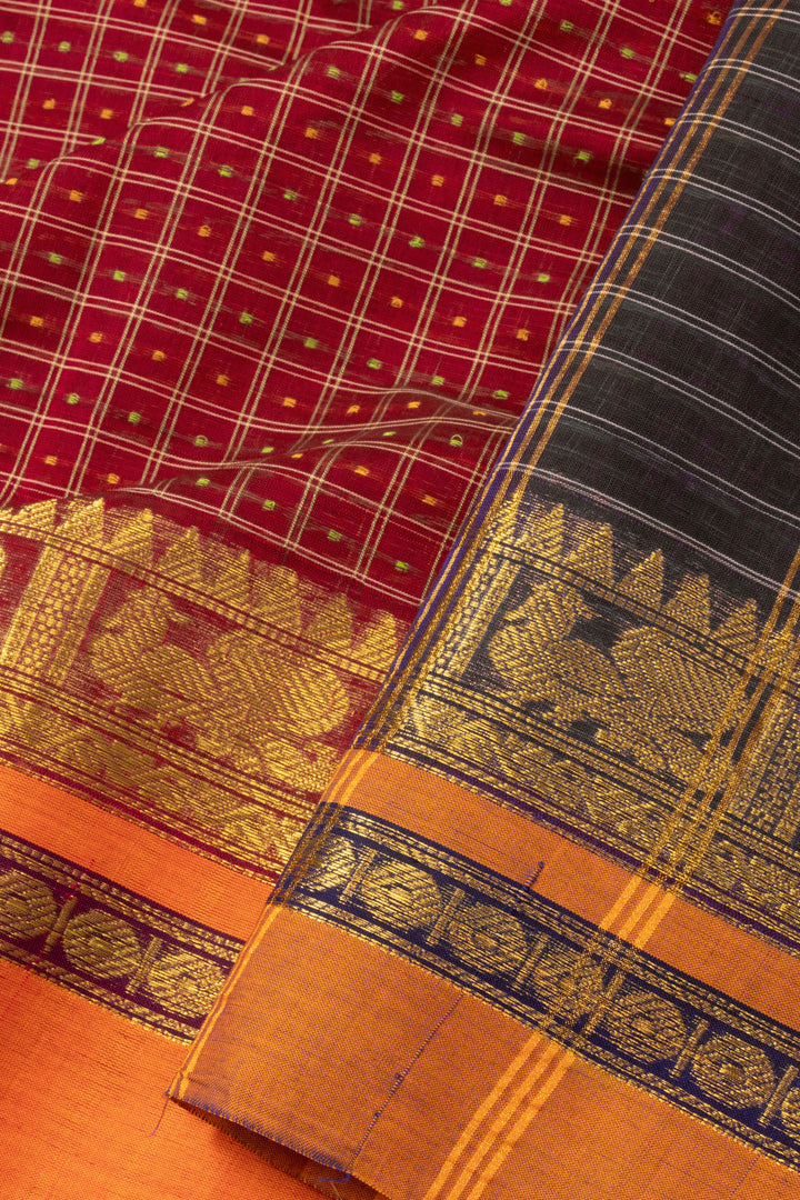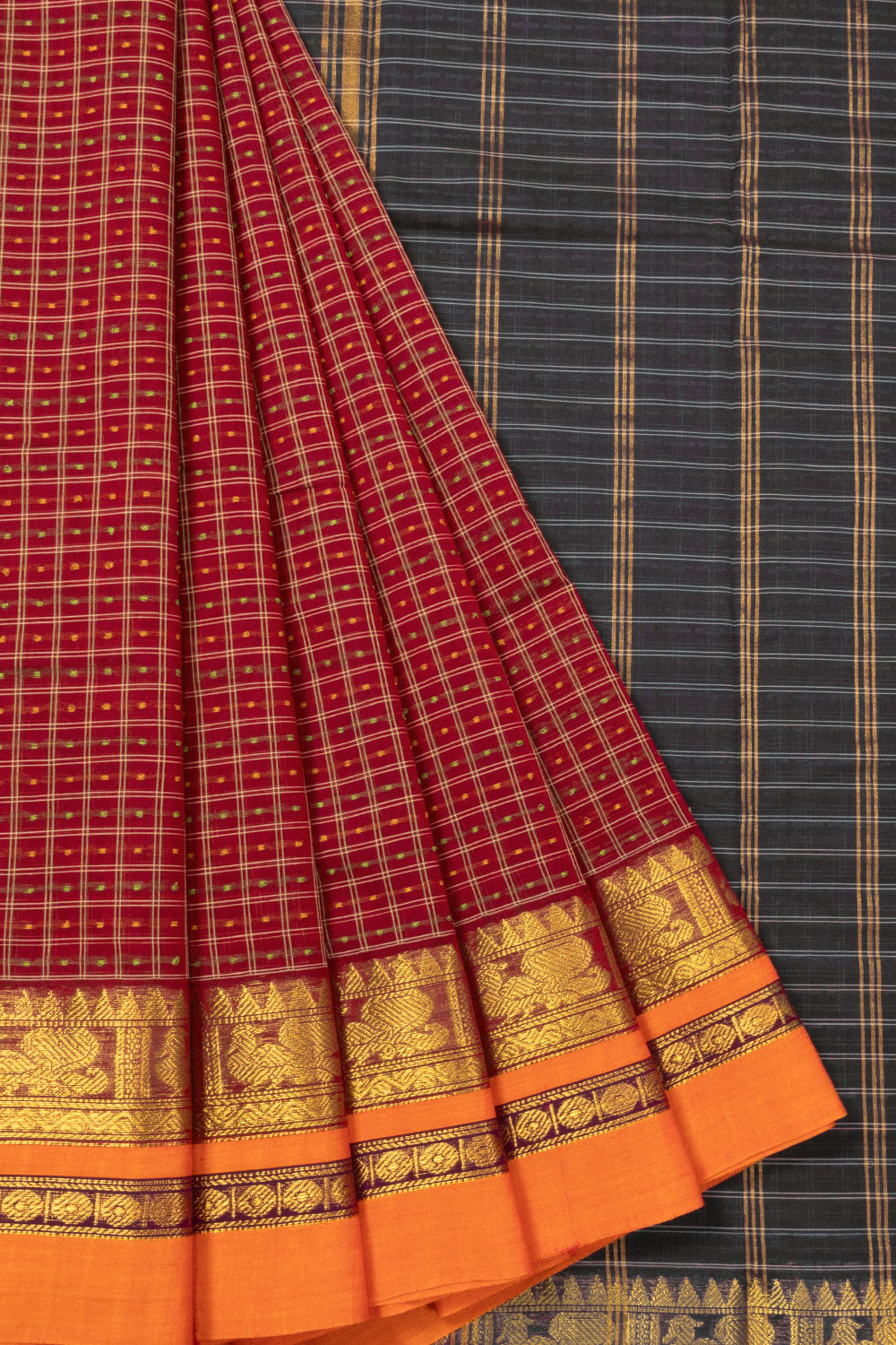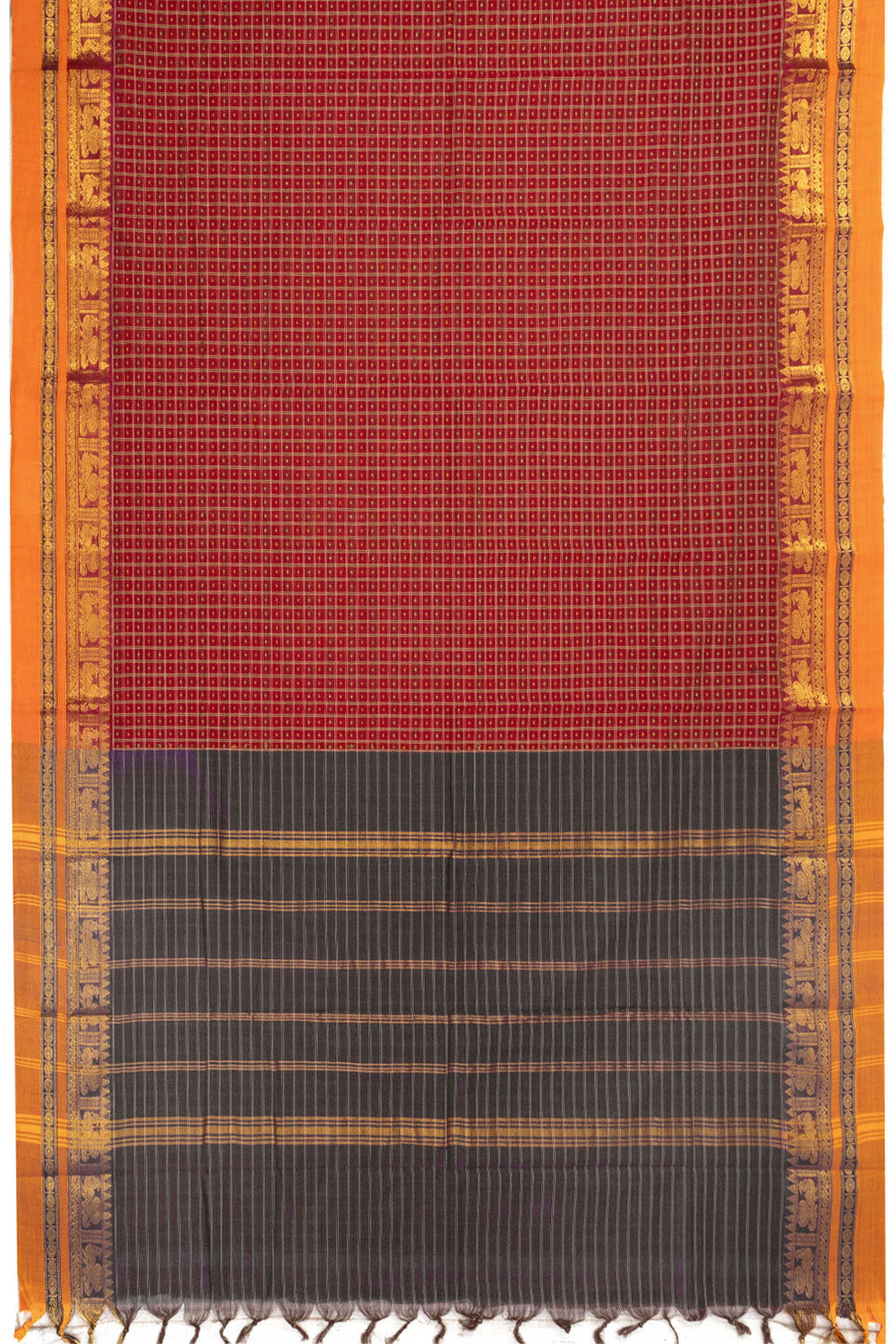 Brick Red Thousand Buttas Chettinad Cotton Saree 10073617