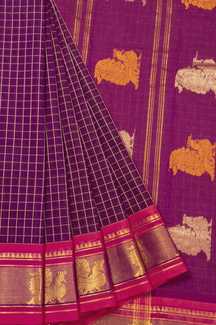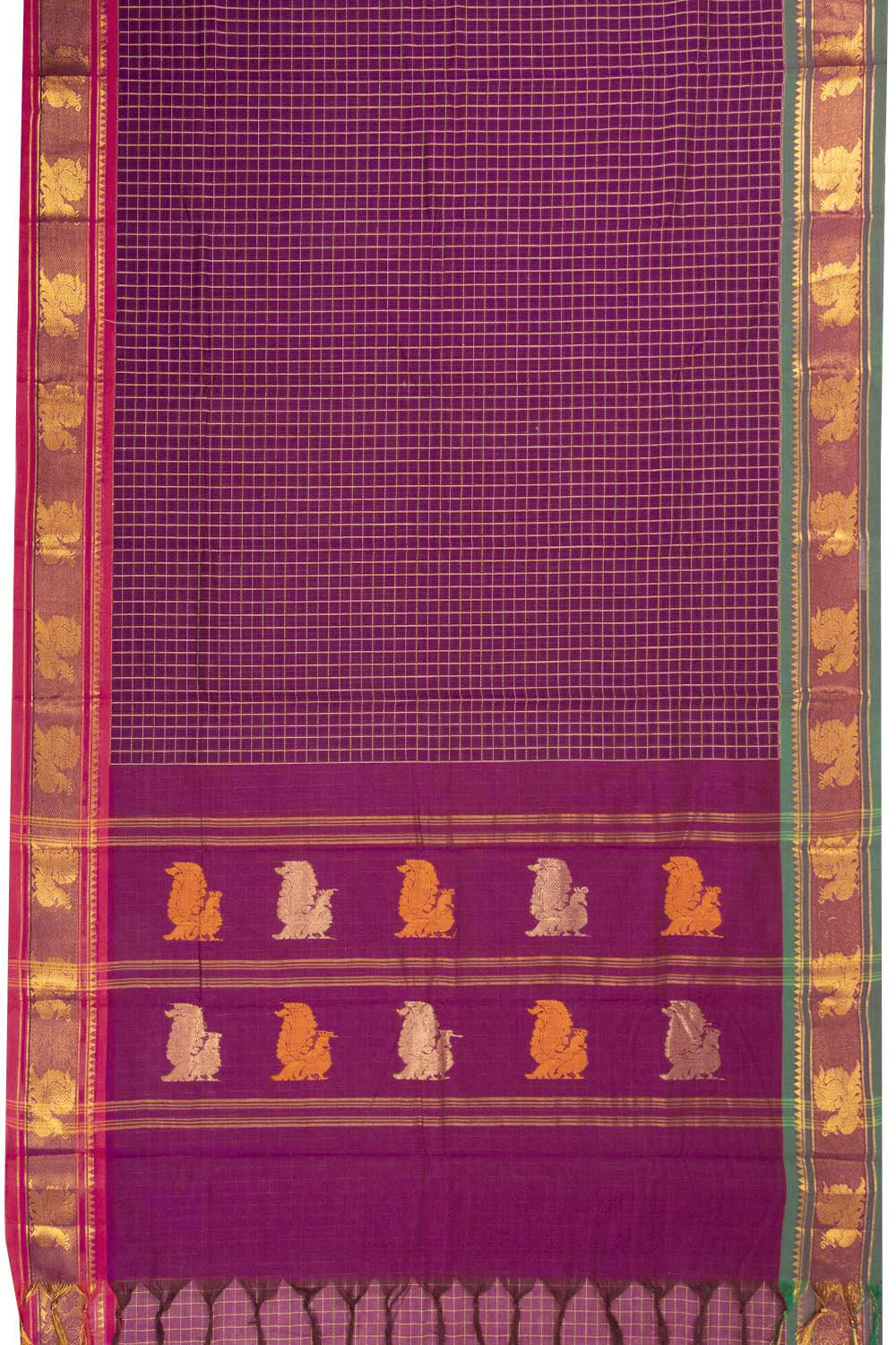 Maroon Handloom Chettinad Cotton Saree Without Blouse 10072576