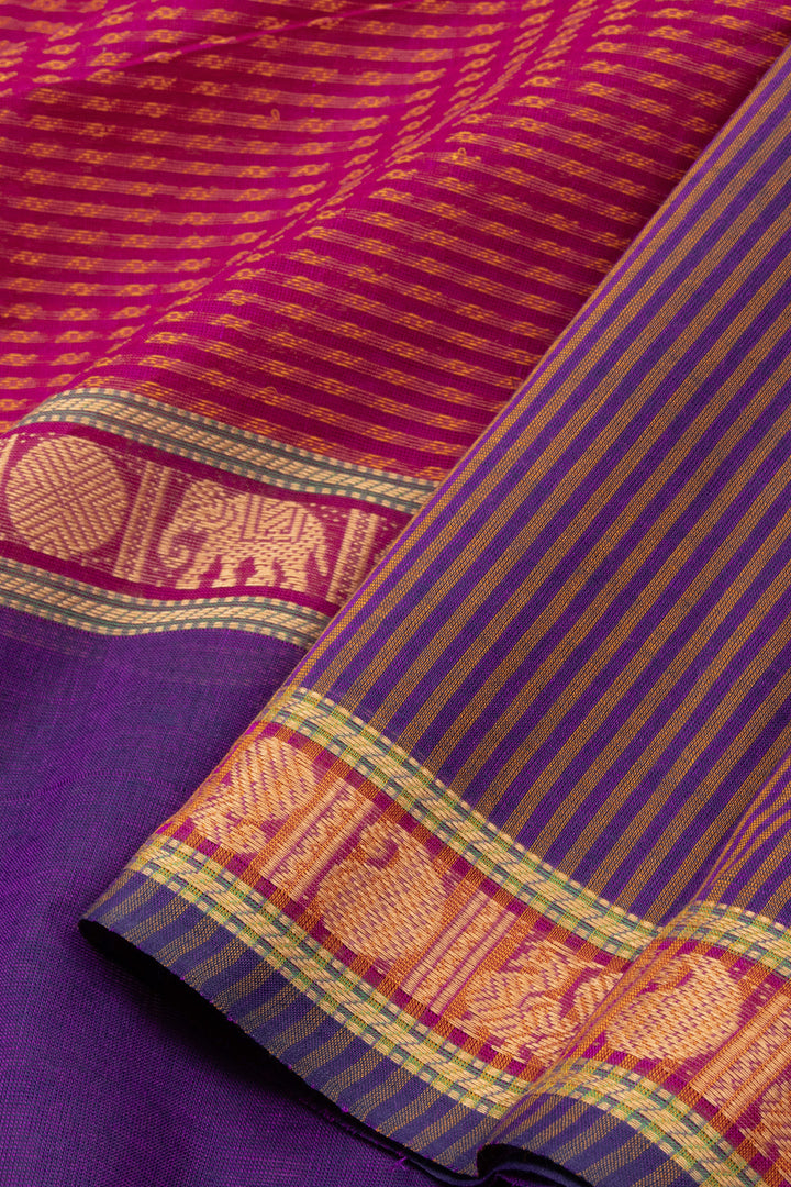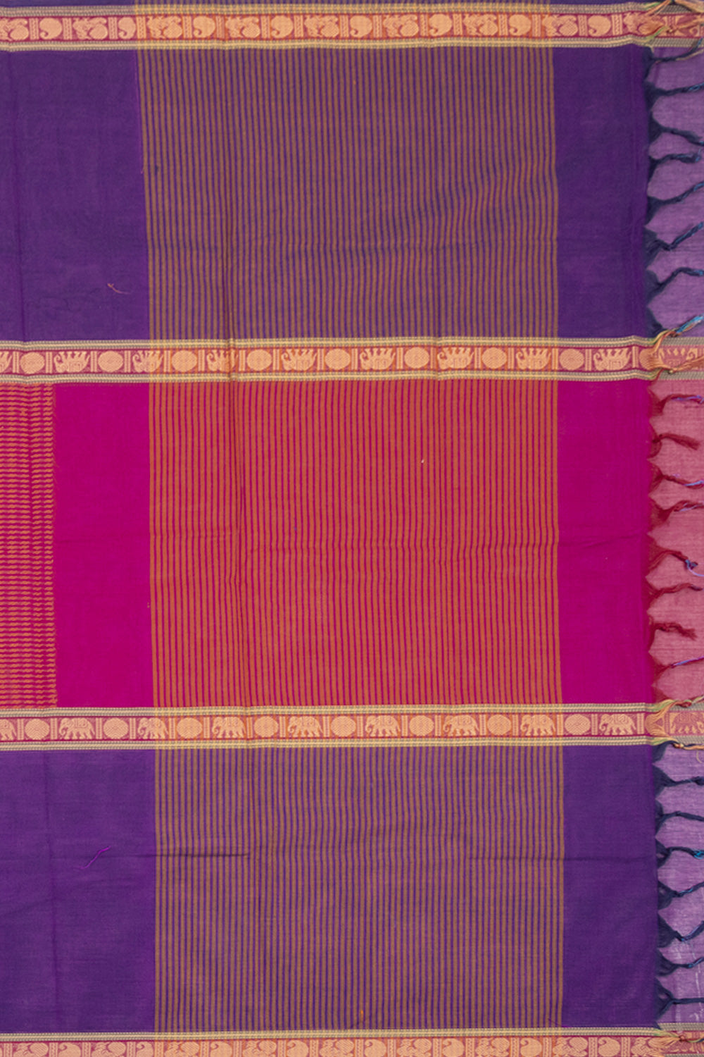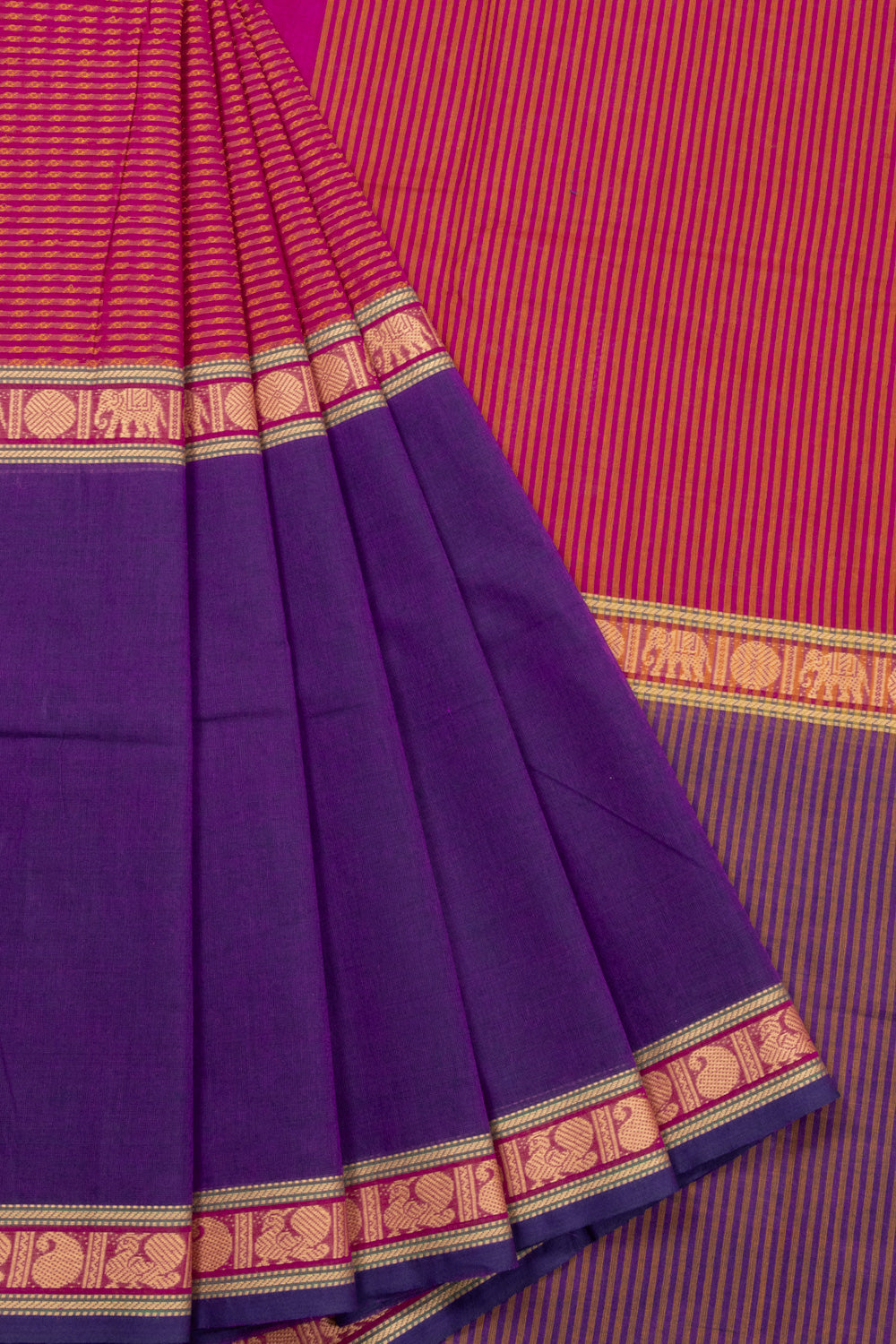 Experience the vibrant colors and exquisite craftsmanship of our Purple Handloom Chettinad Cotton Saree. The bold purple with delicate pink accents make this saree perfect for any occasion. Handwoven from premium Chettinad cotton, it offers unmatched comfort and style. Elevate your wardrobe and embrace the rich traditions of India with this stunning saree.