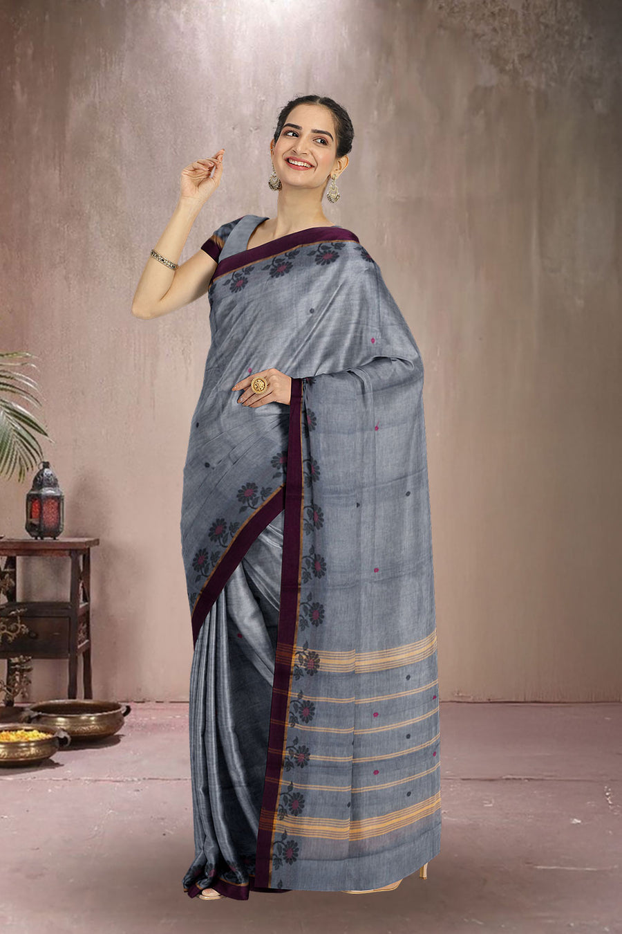 Grey Handloom Chettinad Cotton Saree 10075863 Grey Handloom Chettinad Cotton Saree 10075863
