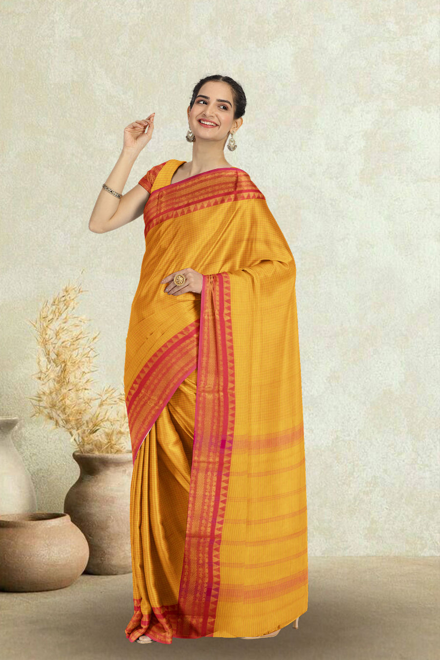 Orange Handloom Chettinad Cotton Saree With Stripes 10075820 Orange Handloom Chettinad Cotton Saree With Stripes 10075820