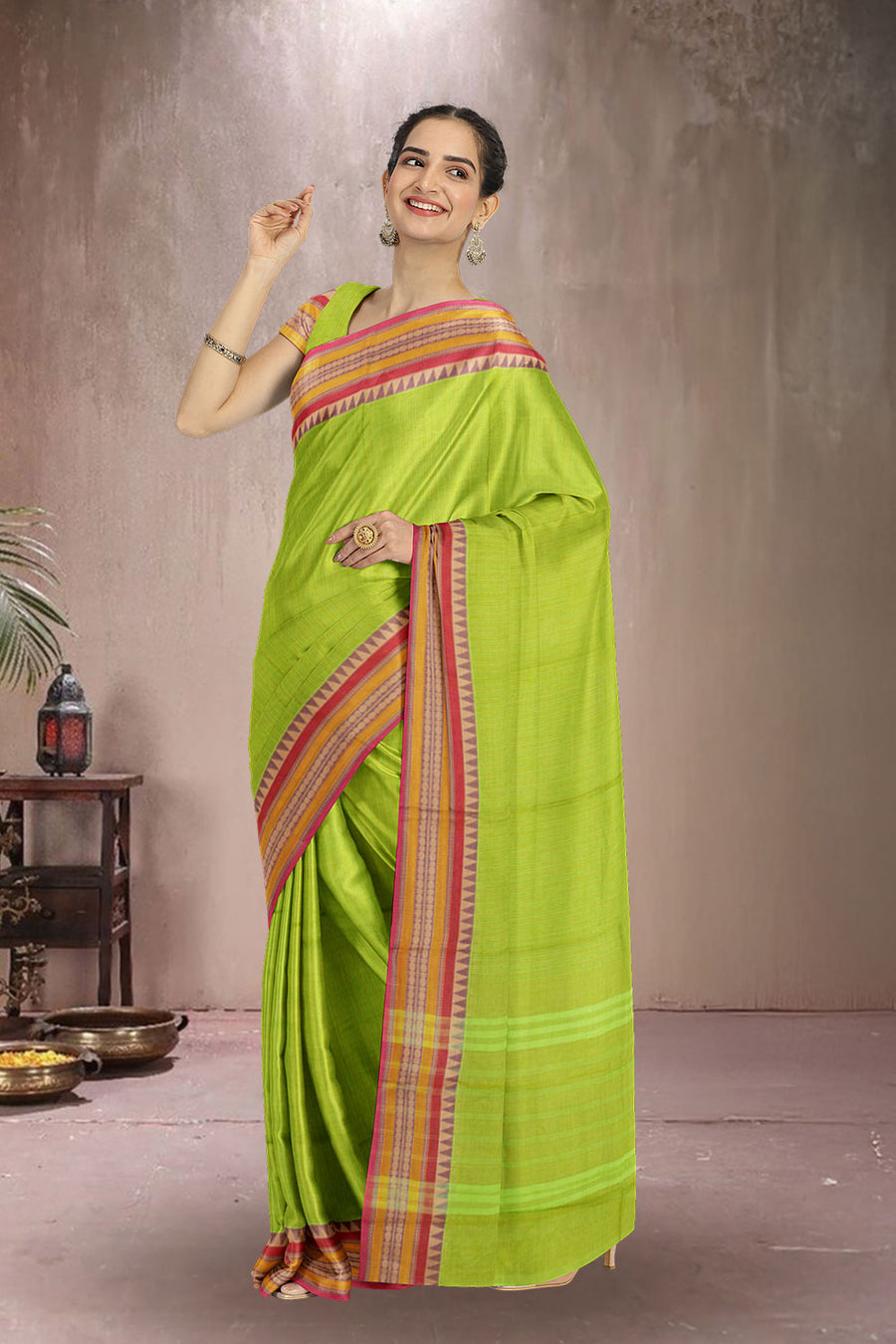 Green Handloom Chettinad Cotton Saree With Stripes And Floral Border 10075838 Green Handloom Chettinad Cotton Saree With Stripes And Floral Border 10075838