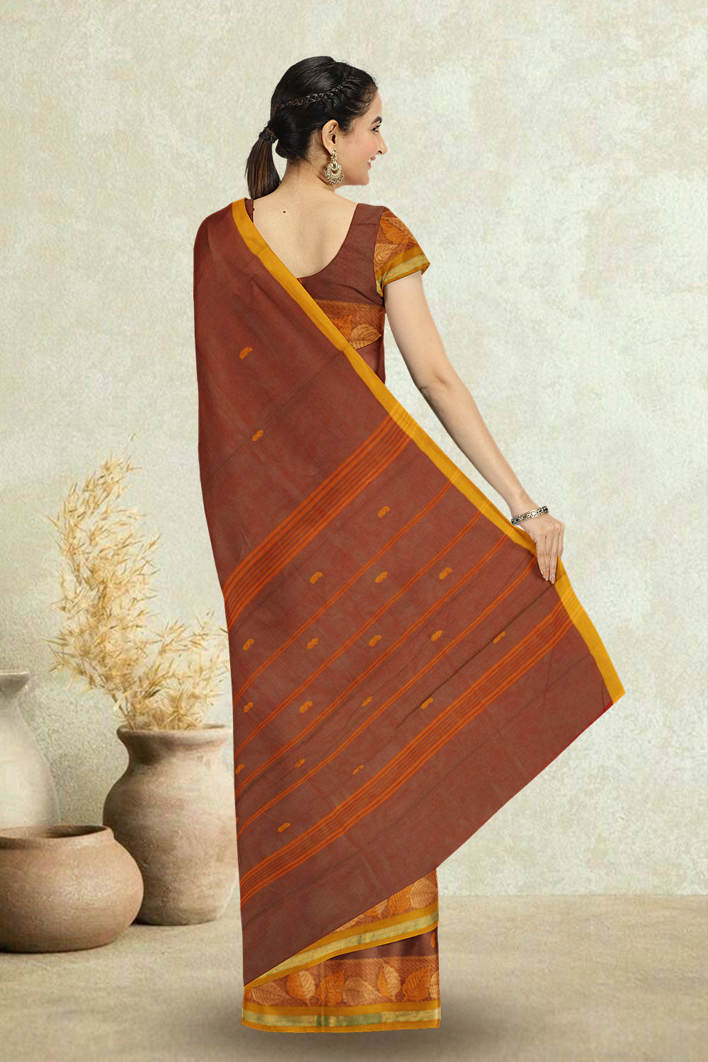 Brown Handloom Chettinad Cotton Saree 10075864 Brown Handloom Chettinad Cotton Saree 10075864