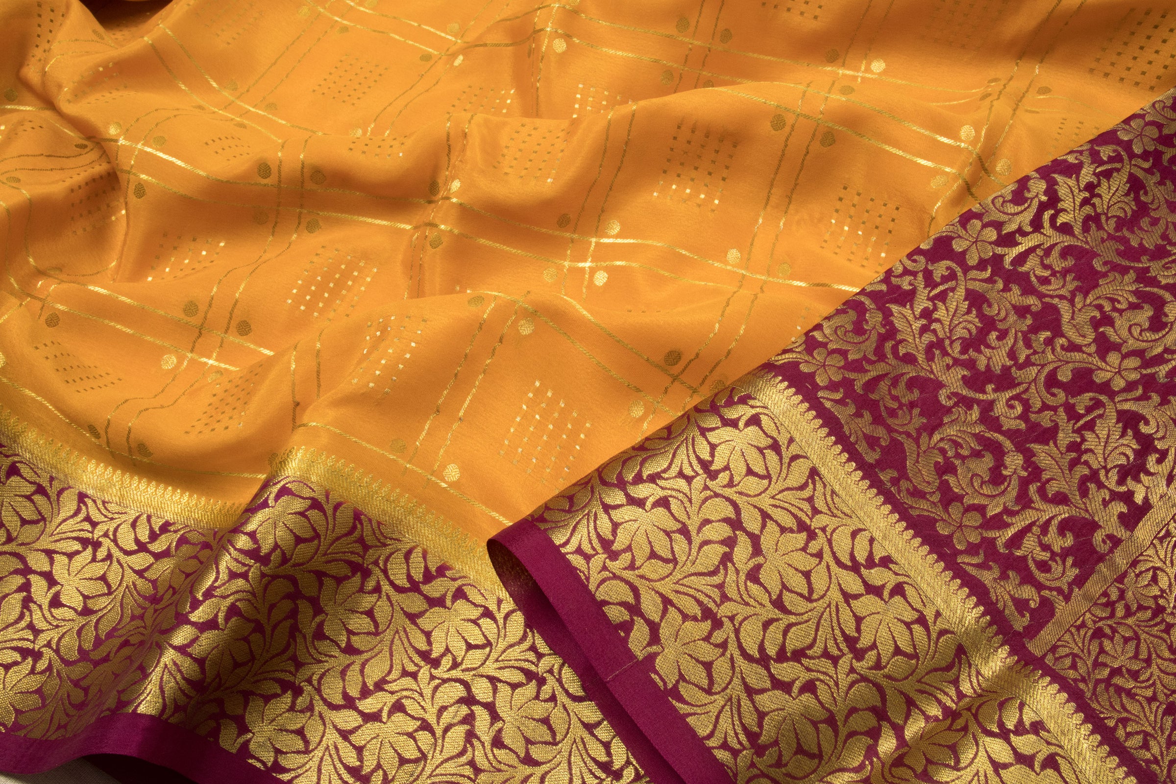 Yellow Mysore Crepe Silk Saree With Zari Border 10076265 Yellow Mysore Crepe Silk Saree With Zari Border 10076265
