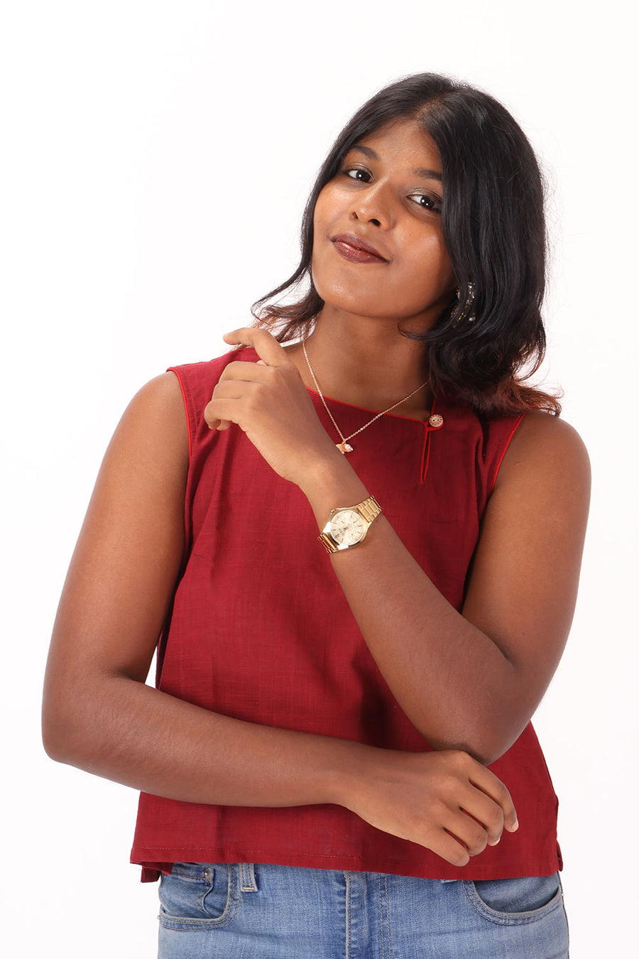 Discover the perfect blend of comfort and style with this Maroon Handcrafted Slub Cotton Crop Top. Made from soft, breathable slub cotton, it ensures all-day ease while showcasing artisanal craftsmanship. Pairs effortlessly wi...