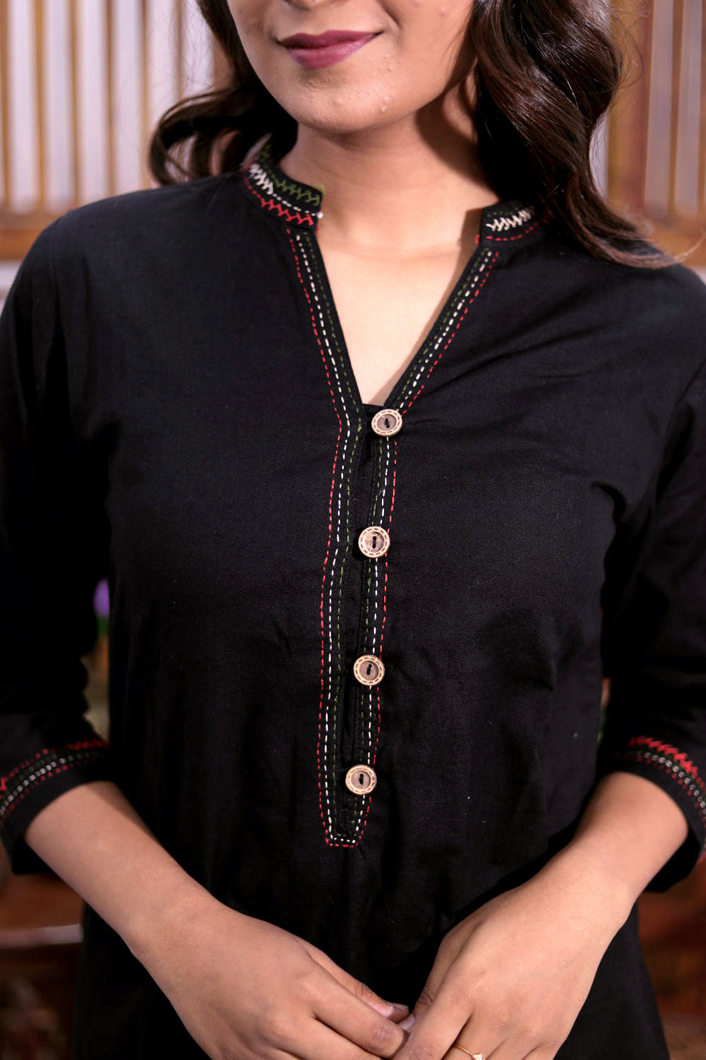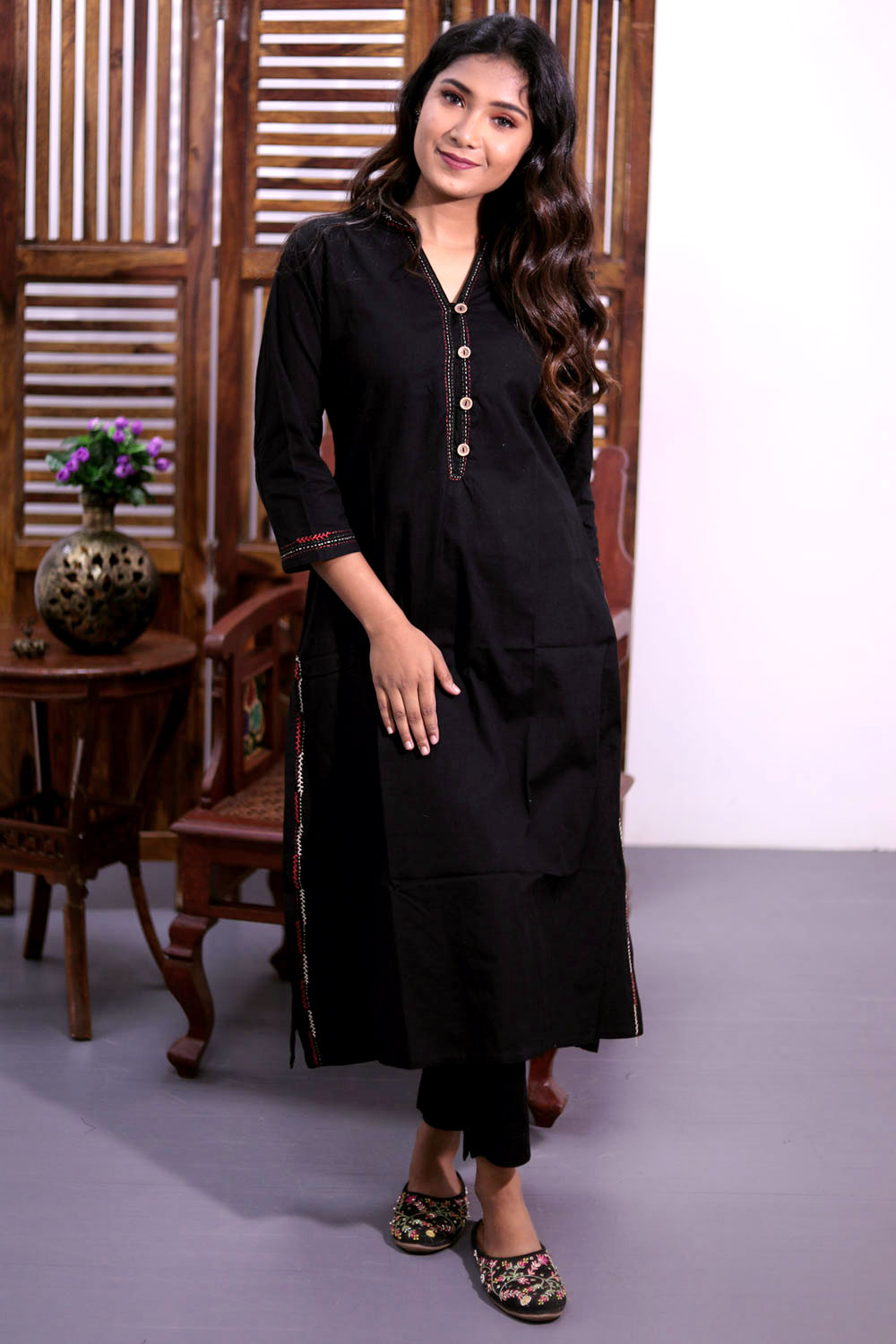 Experience timeless elegance with this Black Hand Embroidered Cotton Kurta. Crafted from breathable cotton, it offers comfort and style for everyday wear or special occasions. The intricate hand embroidery adds a unique, artisanal touch, making each piece truly one of a kind. Perfect for those who appreciate traditional craftsmanship combined with modern comfort. Elevate your wardrobe with this versatile kurta that blends rustic charm and sophisticated design effortlessly.