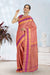 This gorgeous Peach Pure Kanjivaram Silk Saree features intricate floral designs throughout the body. It is complemented by a Pink Retta Pettu Thandavalam Border on both sides. The saree comes with a vibrant Pink Pallu embellished with sparkling diamond and majestic elephant motifs, and a matching pink blouse.