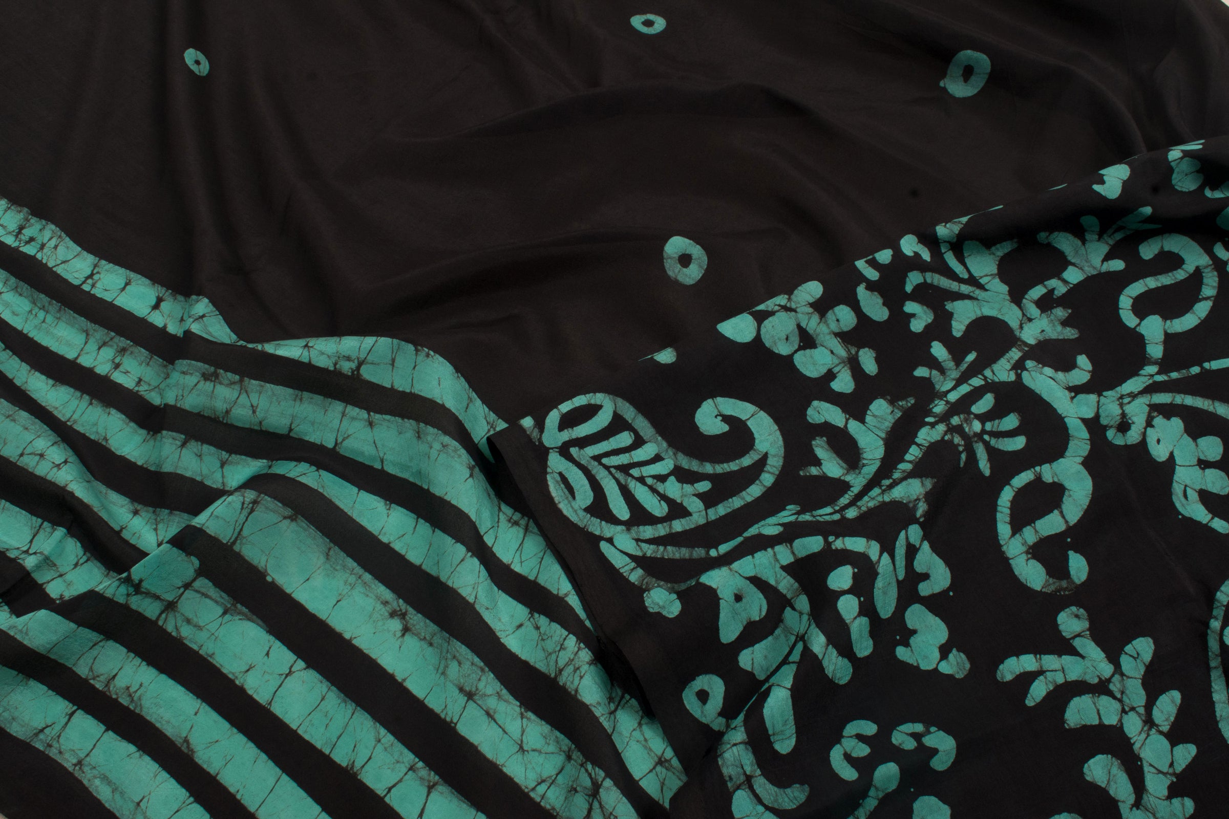 Experience the serene elegance of the Aqua Blue Batik Mulberry Silk Saree. Made from premium Mulberry silk, this saree offers a smooth, luxurious texture that drapes beautifully. The soothing aqua blue shade is enhanced by intr...