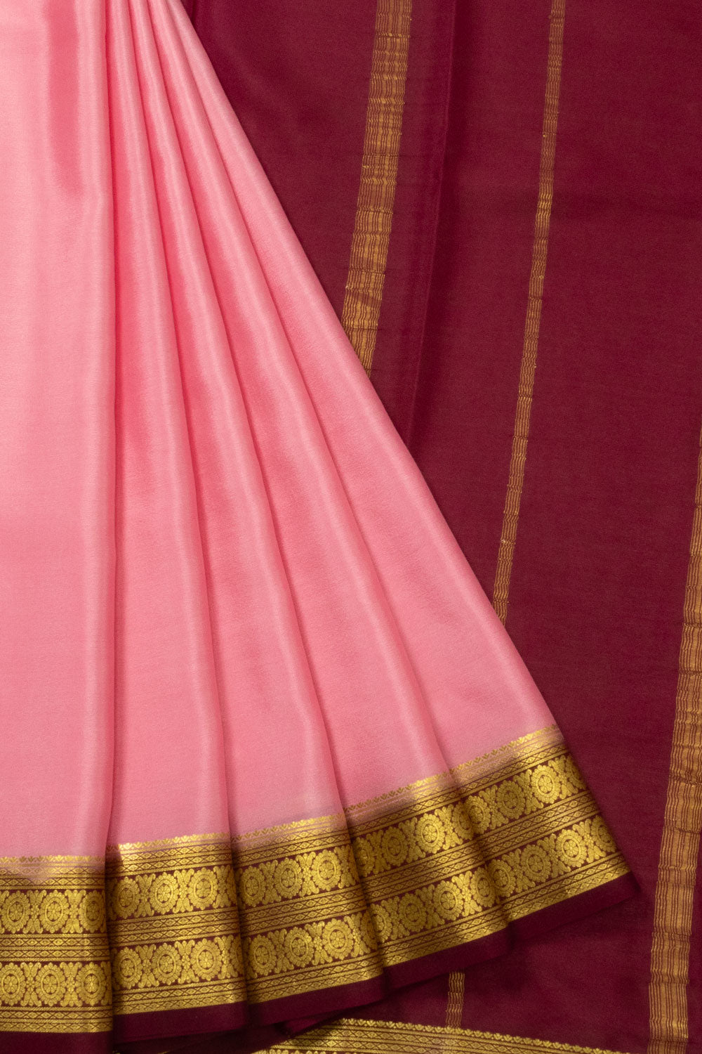 Add a fresh and elegant touch to your wardrobe with this Pink Mysore Crepe Silk Saree. Crafted from soft, flowing crepe silk, it offers a graceful drape and comfortable fit. The delicate pink shade brings a feminine charm, maki...