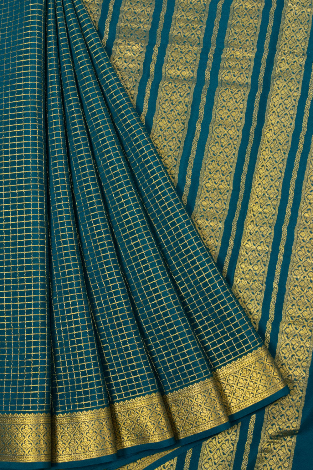 Step into elegance with this Green Mysore Crepe Silk Saree. Made from soft, flowing crepe silk, it drapes beautifully to enhance your silhouette. The vibrant green shade adds a fresh and sophisticated touch, perfect for festive...