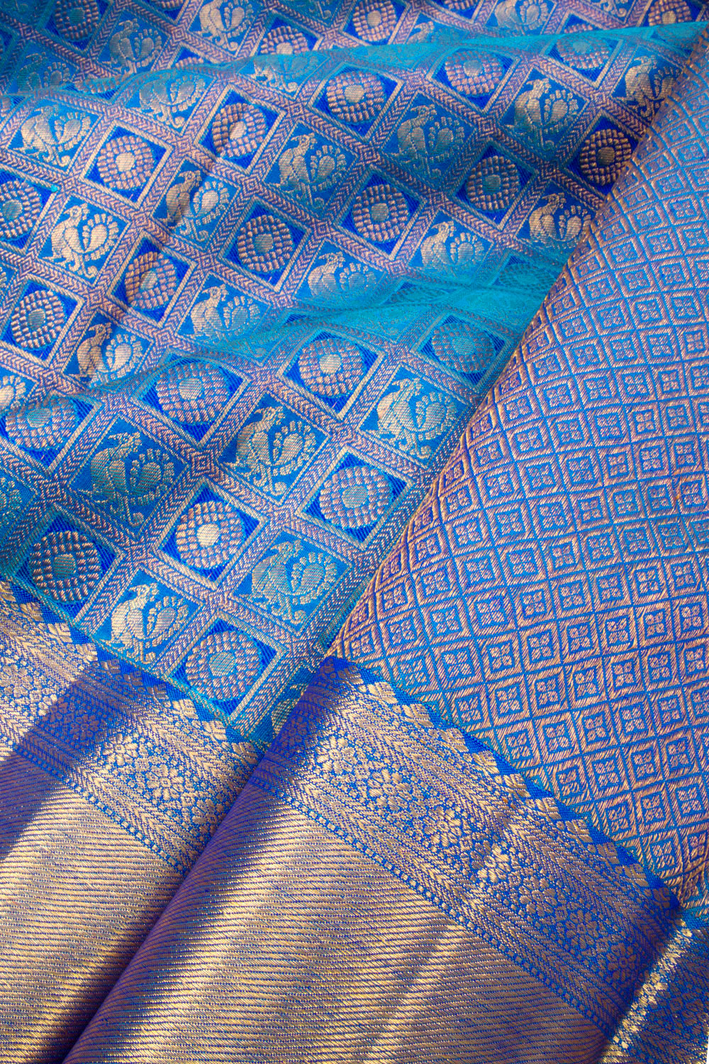 Celebrate tradition with the Ocean Blue Bridal Kanjivaram Silk Saree, crafted from rich silk that showcases intricate craftsmanship. Its deep blue hue complements the exquisite detailing, making it a timeless choice for your sp...