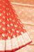 Unlock your fashion potential with this luxuriantly vivid Shocking Orange Handloom Banarasi Kora Silk Saree. Boasting leaf motifs on the body, a jangla border, and a pallu, this piece of art is delicately crafted with exquisite detail and luminous golden accents, producing an enchanting effect that is sure to make a lasting impression.