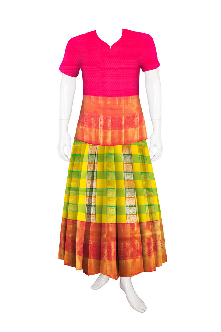- Top Length - 93 cm, Top Width - 45 in, Top Border Width - 39 cm, Pavadai Length - 2.72 m, Pavadai Width - 45 in, Pavadai Border Width -39 cm