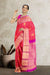 This Pink Shot Orange Jacquard Pure Zari Kanjivaram Silk Saree features Floral Motifs on the Zari Border, Diamond Motifs on the Pallu, and a contrast blouse with a Zari Border. The classic colour palette makes this a classic, eye-catching look for any special occasion.