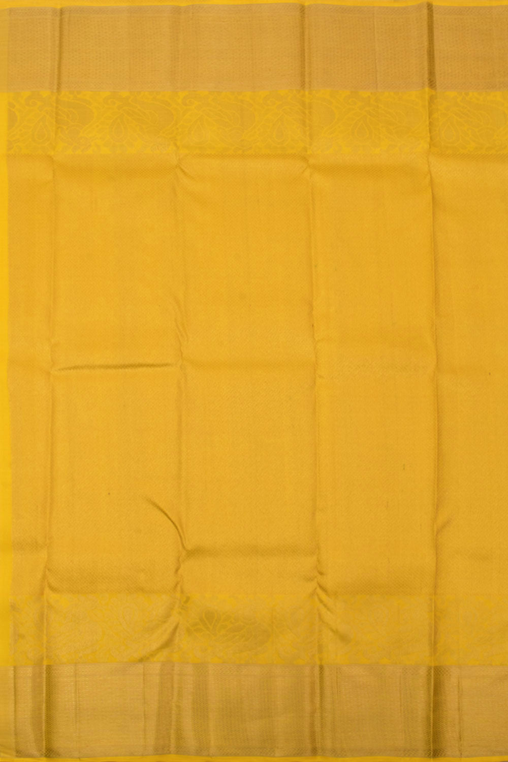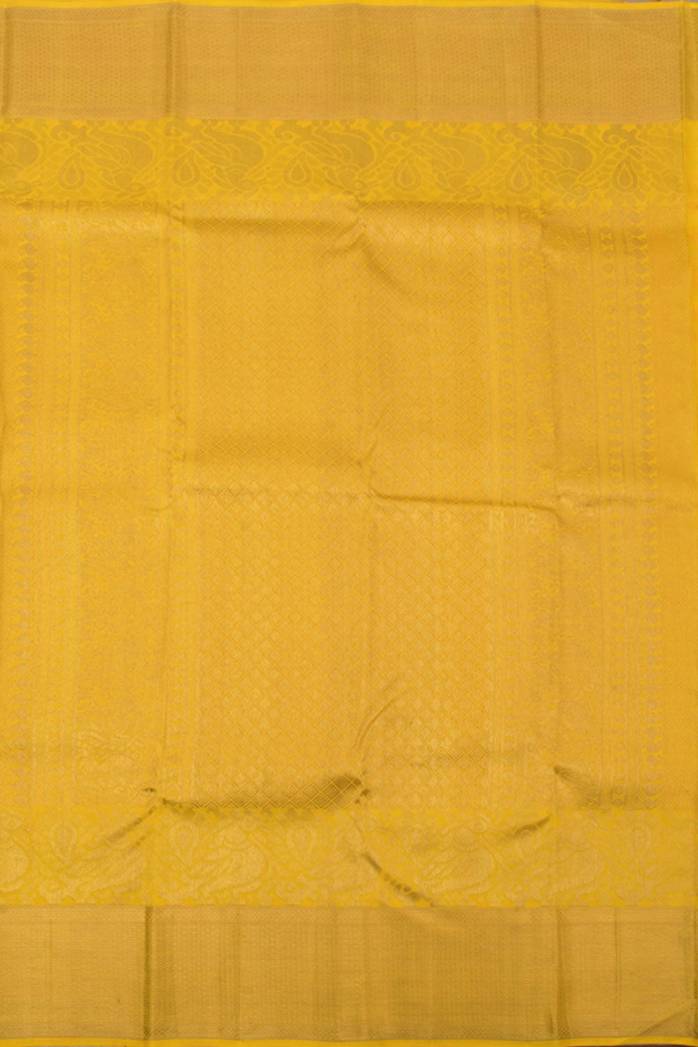 Get ready to stand out with this stunning Barbie Pink Pure Zari Kanjivaram Silk Saree! Adorned with beautiful Peacock and Kodimalar Motifs all over, the saree features a Contrast Yellow Korvai Border with more Peacock and Mayilkann Motifs. The pallu is intricately designed with zari work, and a complimentary contrast blouse completes the look. Don't miss out on this exquisite saree that will make you feel like a goddess!