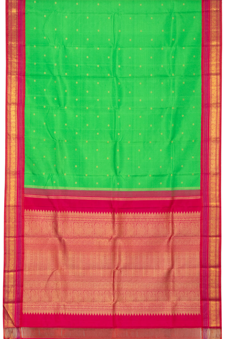 This beautiful green handloom Korvai Kanjivaram Silk Saree will make you the talk of the town. Soft and luxurious on the skin, it features an intricate weave and a unique pattern for a timeless elegance. Make a statement with this stunning saree!