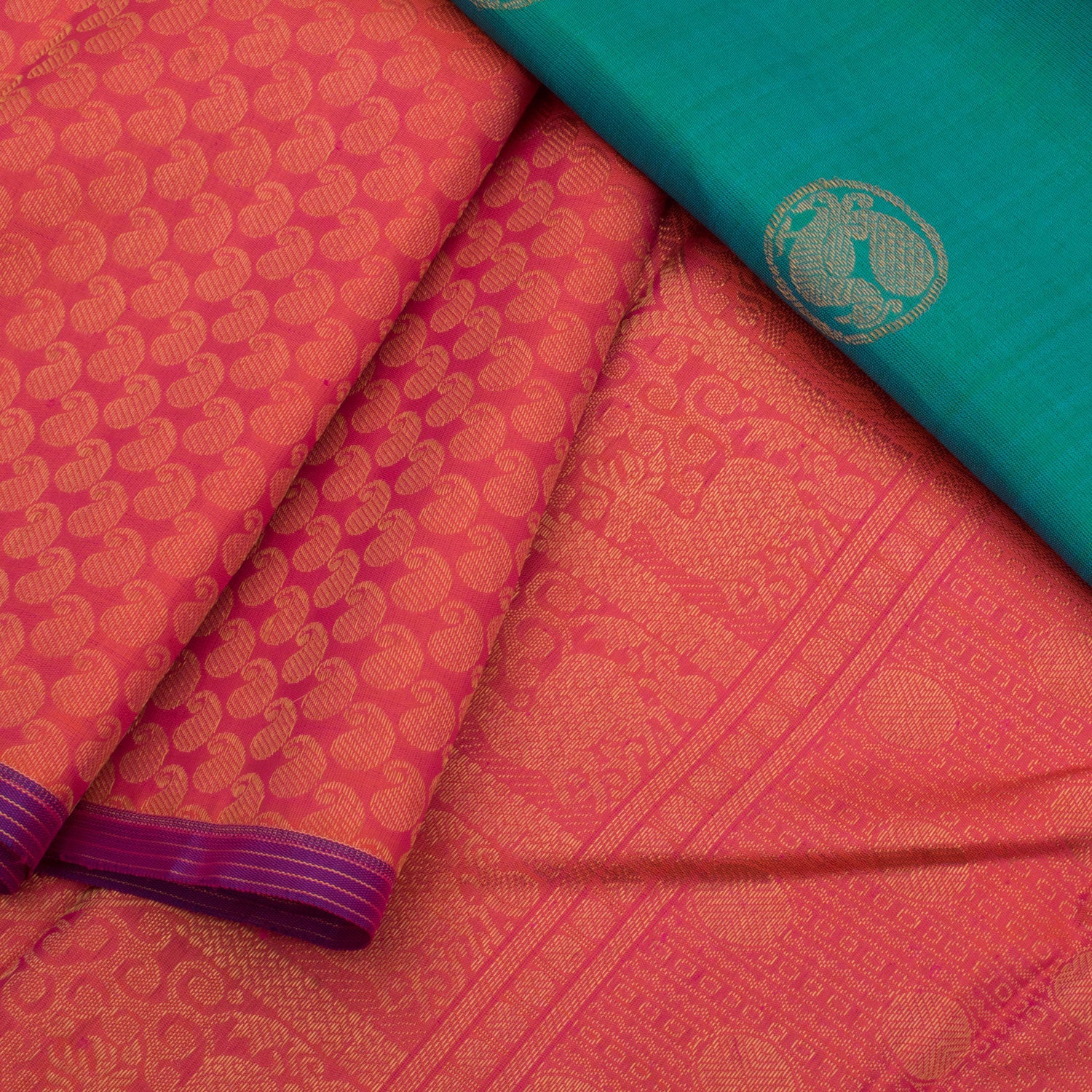 Handloom Pure Zari Half and Half Bridal Korvai Kanjivaram Silk Saree with Mayil Chakram Paisley Motifs 10055755