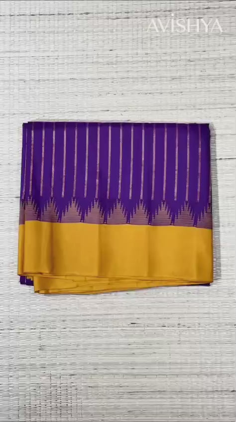 Moonlit Plum Purple Gadwal Kuttu Silk Saree With Stripes Design And Temple Border 10076204