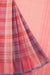 This elegant Pure Zari Kanjivaram Silk Saree features a Checks and Stripes Design in various Shades of Pink. The border of the saree is adorned with silver zari temple patterns, while the Pallu is a beautiful Peachish Pink with Bands of Silver Zari. It comes with a matching Peachish Pink blouse.