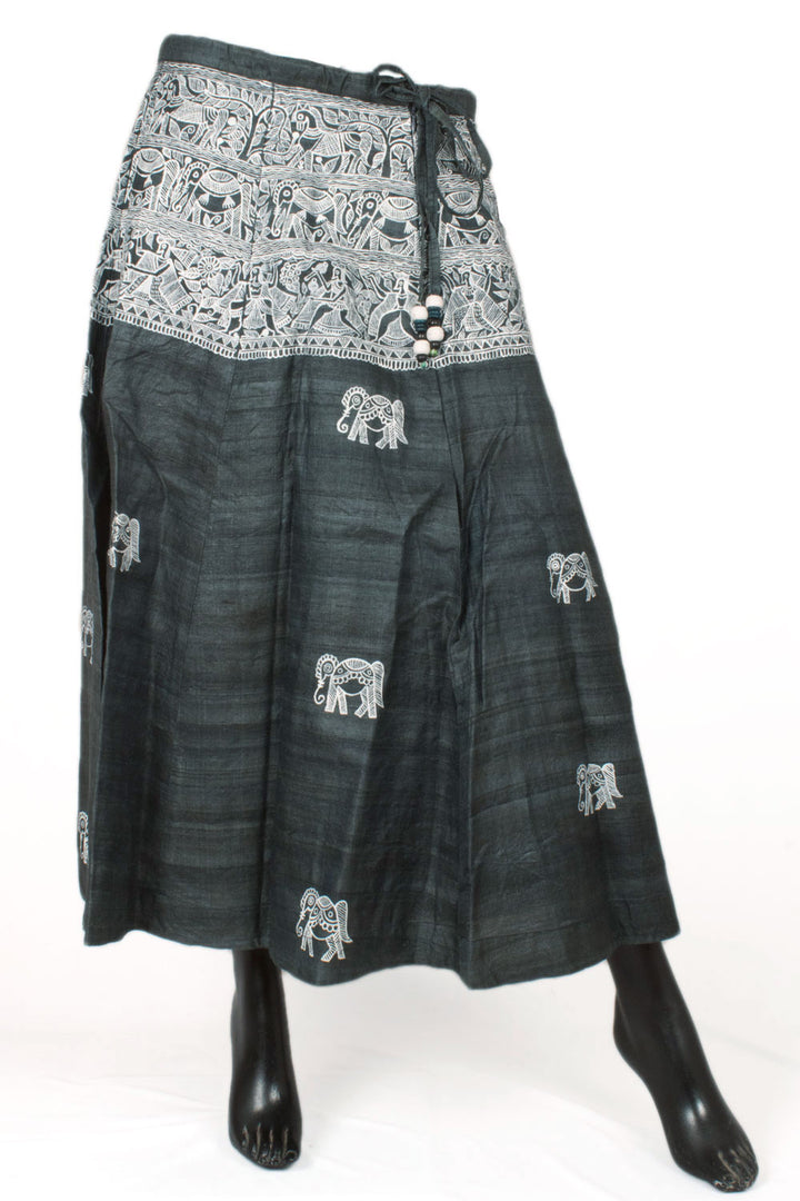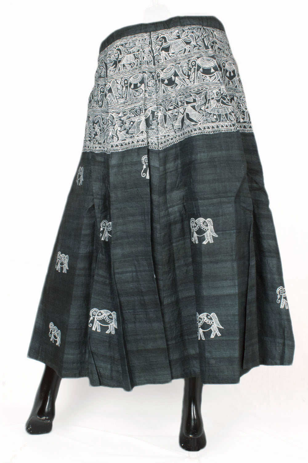 Hand Painted Madhubani Bhagalpur Tussar Silk Skirt with Godna Art Work 10057656