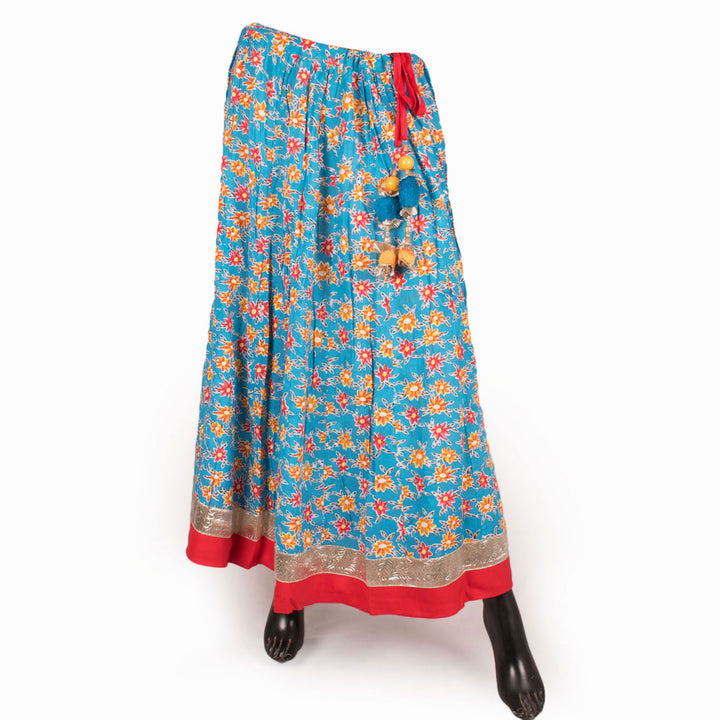 Printed Cotton Cheent Kalidar Skirt with Fancy Tassel 10055166 - 40