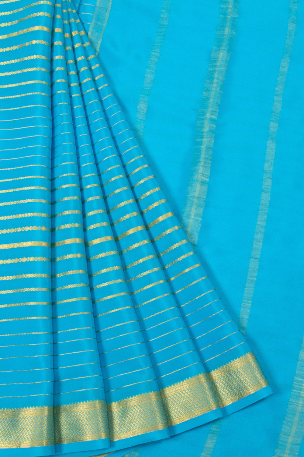 Elevate your elegance with the Blue Mysore Crepe Silk Saree, a timeless blend of tradition and sophistication. Crafted from premium Mysore silk, its smooth crepe texture drapes gracefully, offering unmatched comfort and a flatt...