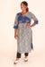 This stylish kurta features an Anghrakh style overlay design and a captivating play of shades of blue with contrasting geometric and floral patterns. Embodying a modern and unique look, it is a must-have for the fashion-forward individual.
