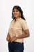 This comfortable beige crop top features a Chinese collar and is made of soft cotton for a stylish and versatile addition to your wardrobe. Perfect for everyday wear or dressing up for a casual night out, this top will keep you looking and feeling great.
