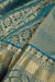 This Steel Blue Bridal Kanjivaram Silk Saree boasts a beautiful floral pattern that extends across the entire body and border is complemented by a matching pallu. A contrasting blouse completes the look.