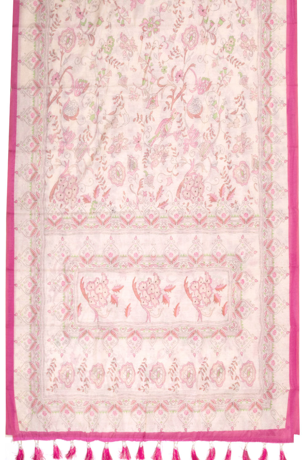 Cream Kalamkari Kantha Printed Malai Cotton Saree 10074906