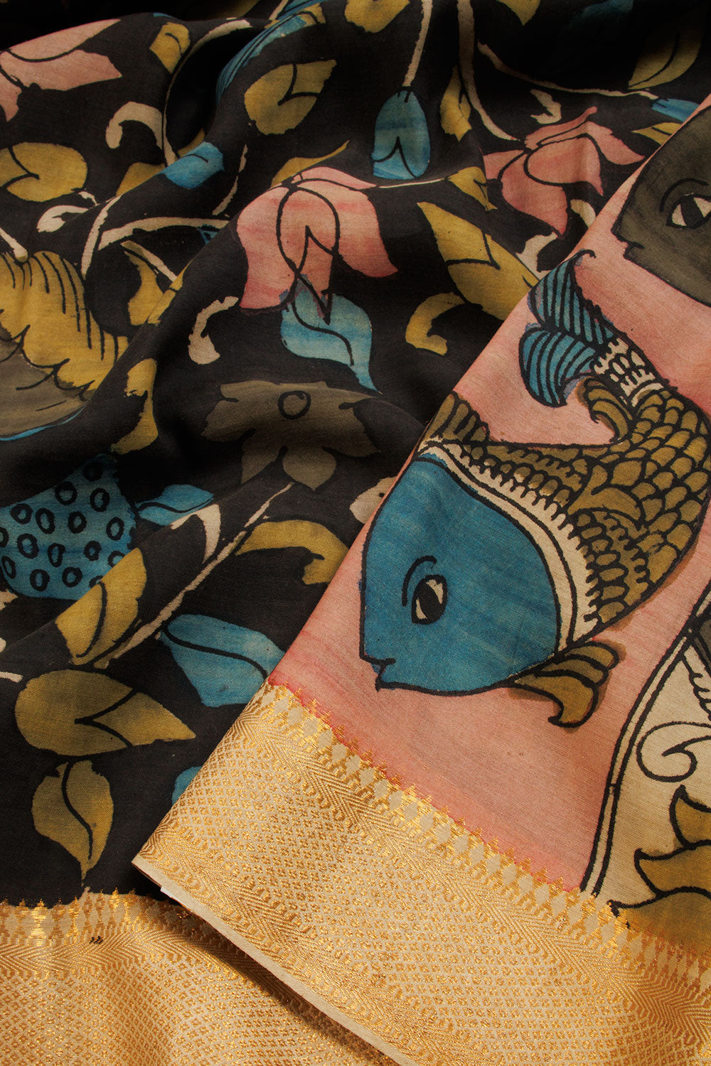 Pure Pen Kalamkari Sarees - Artwork with Bamboo Pen and Natural Dyes