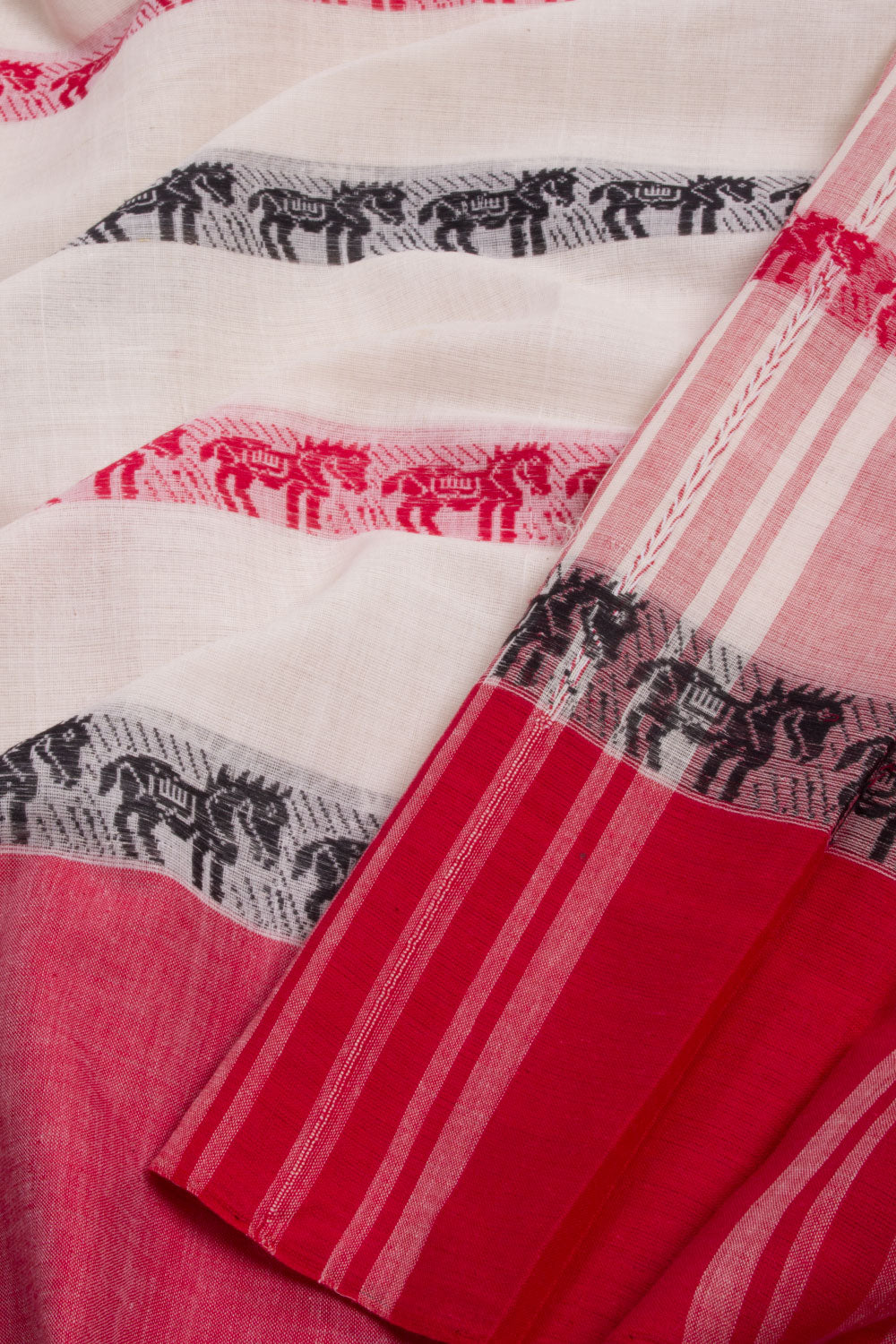 Off White Handloom Dhaniakhali Cotton Saree 10068868