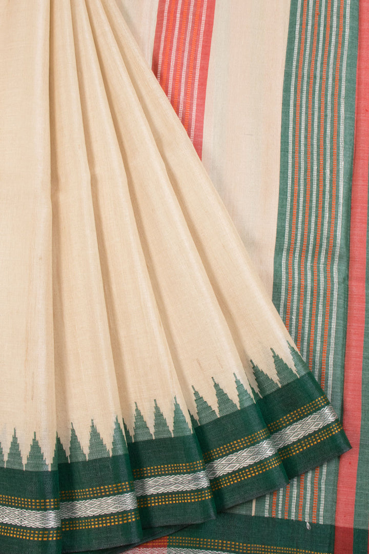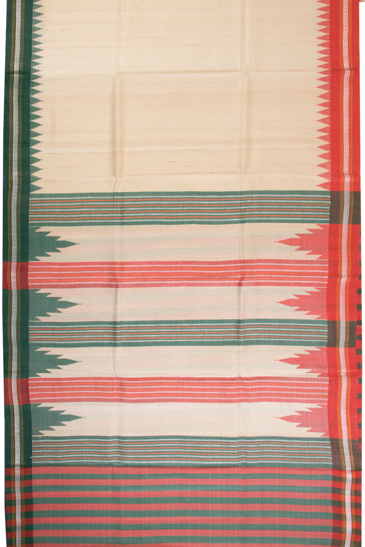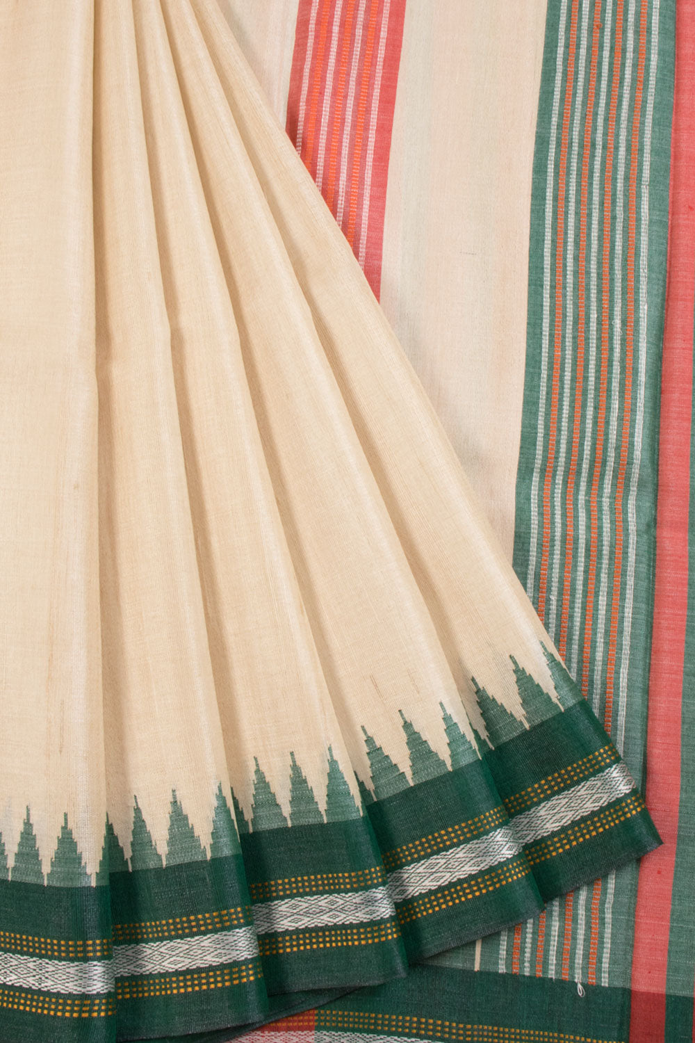 Beige Chhattisgarh Ganga Jamuna Border Tussar Silk Saree 10068822