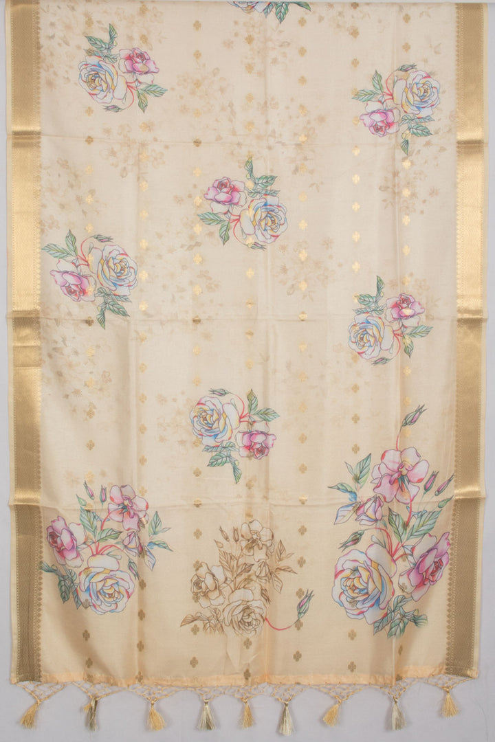 Cream 3-piece Banarasi Silk Salwar Suit Material with Printed Dupatta 10065491