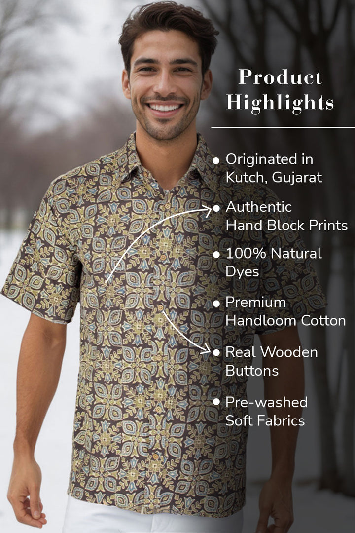 Black Half Sleeve Ajrakh Printed Cotton Mens Shirt 10071085