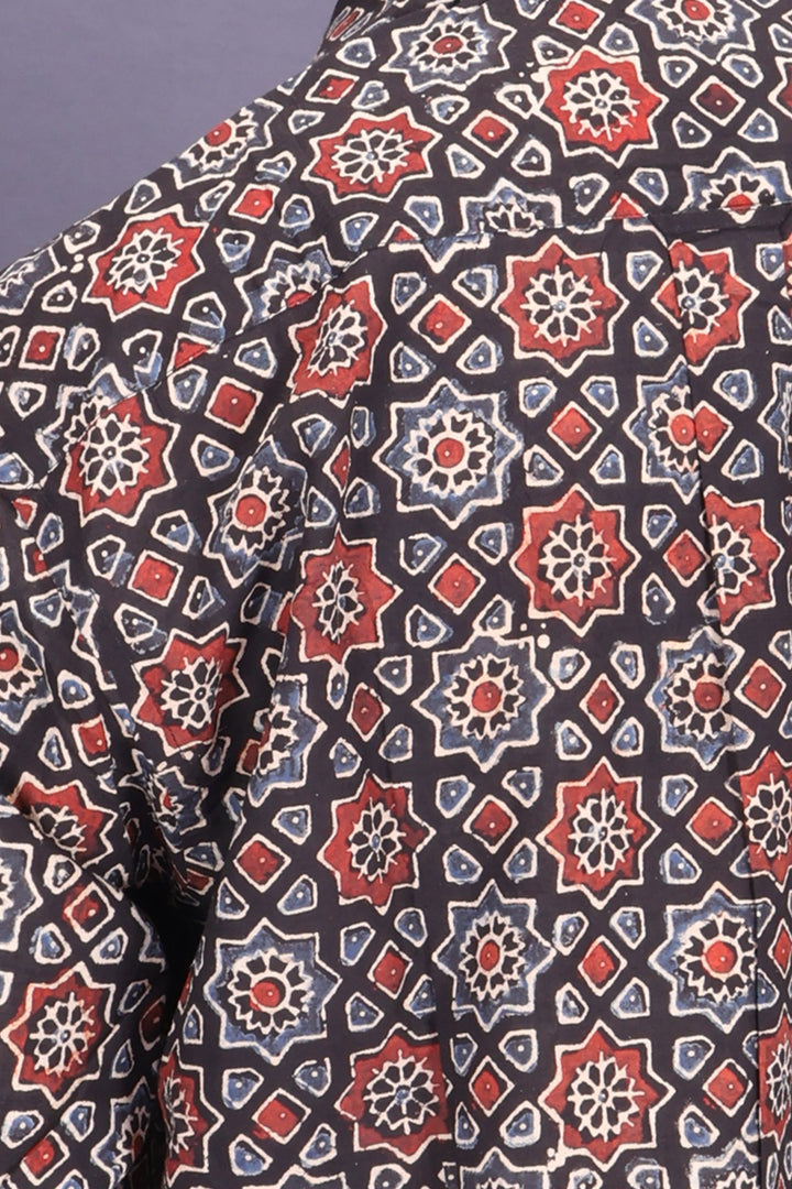 Black Full Sleeve Ajrakh Printed Cotton Mens Shirt 10071155