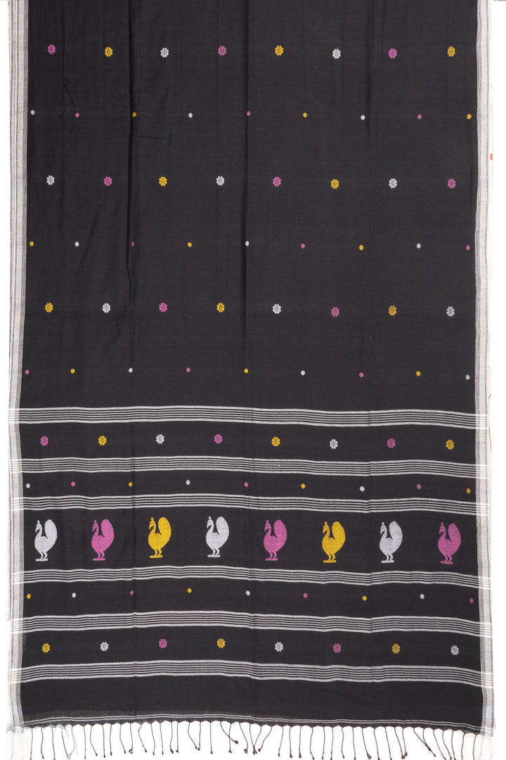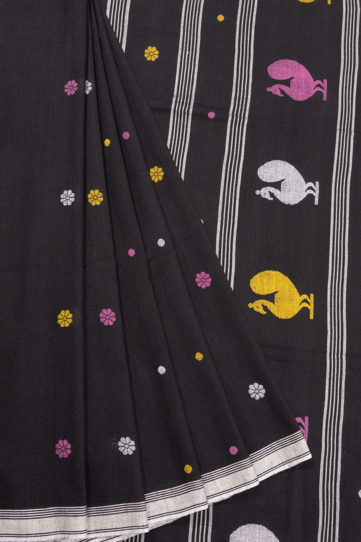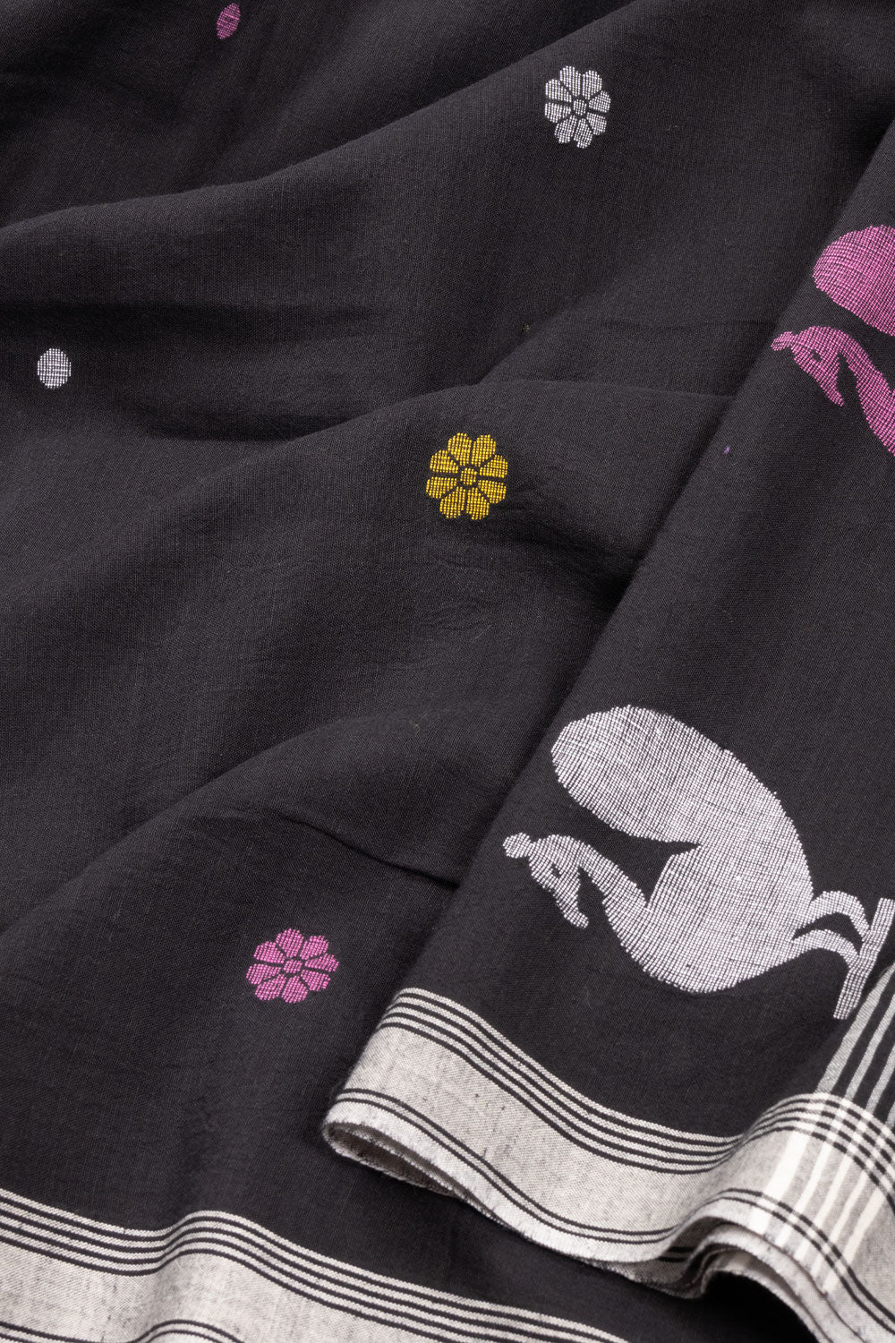 Black Handspun And Handwoven Jamdani Cotton Saree 10070859