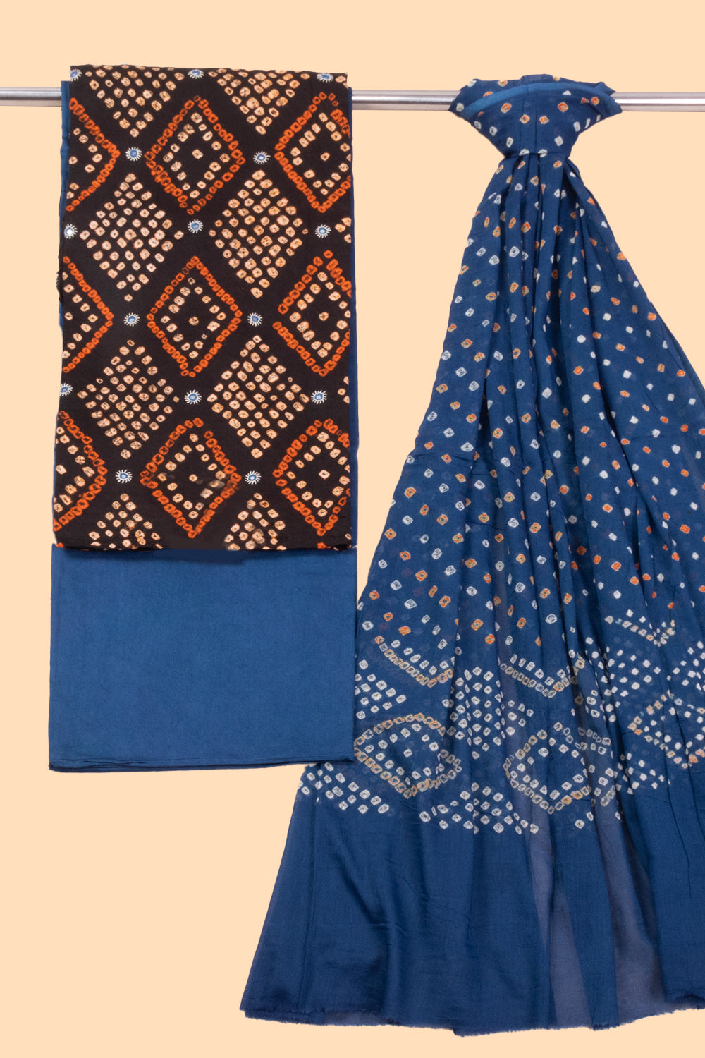 Black Bandhani Cotton 3-Piece Salwar Suit Material 10069626